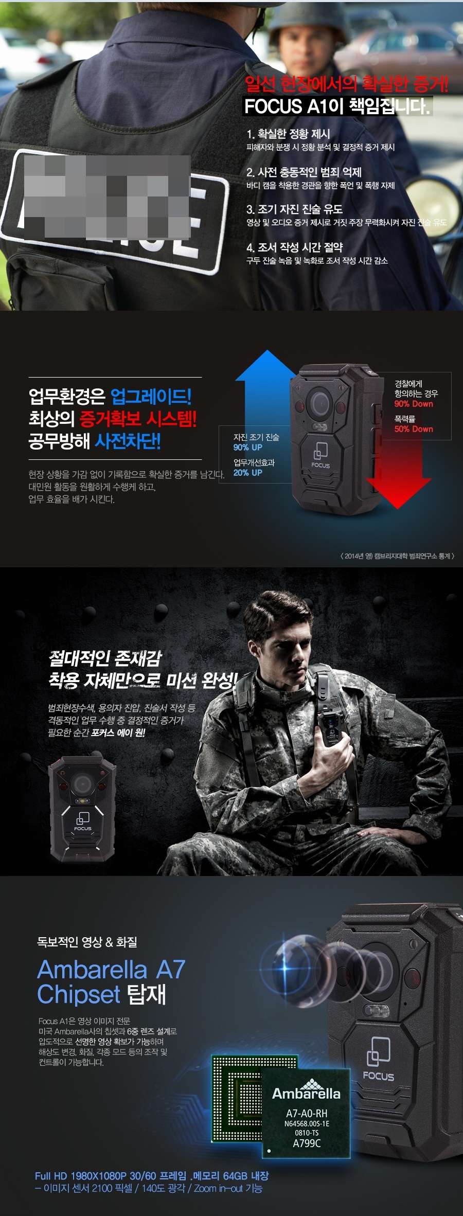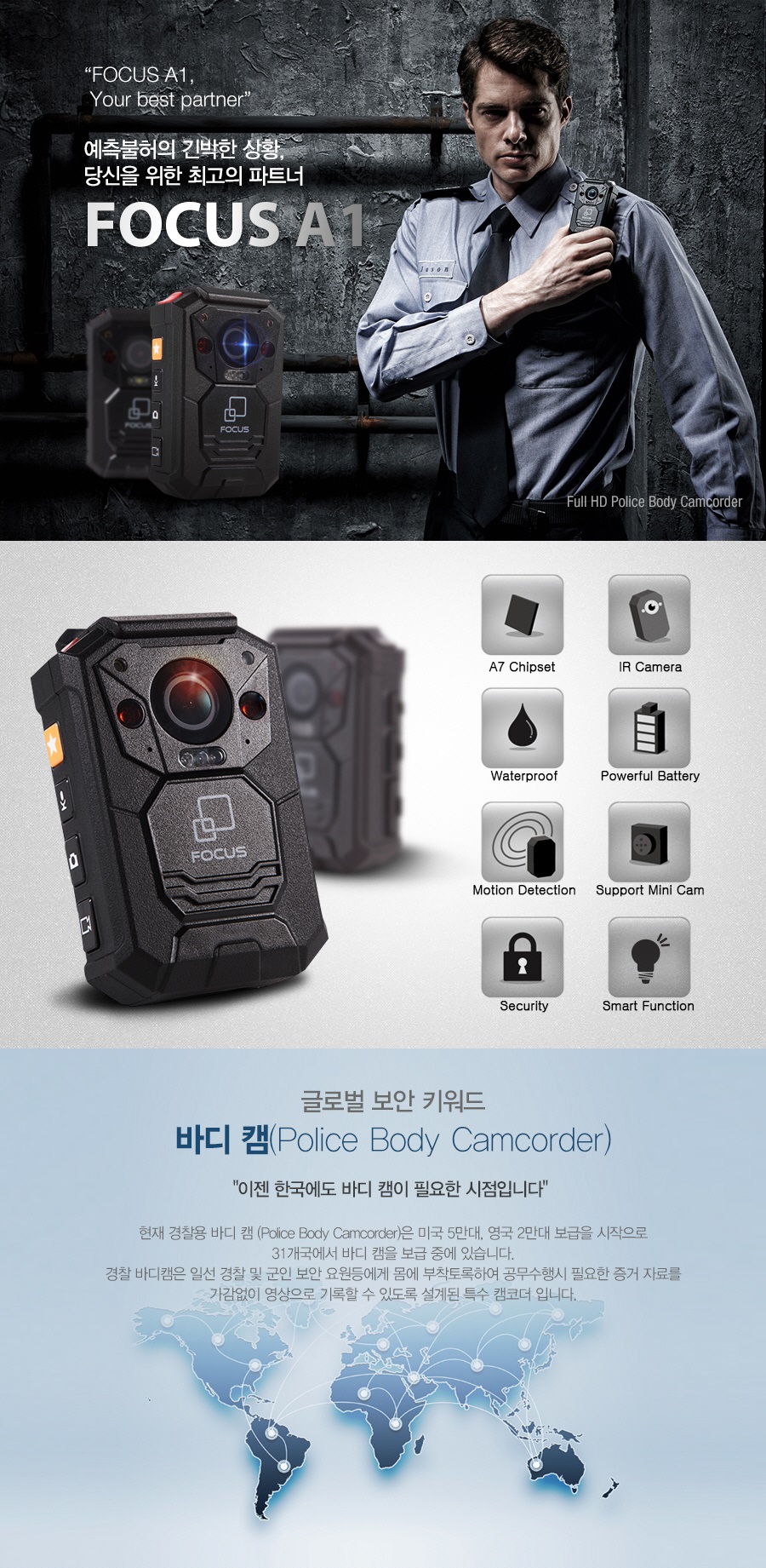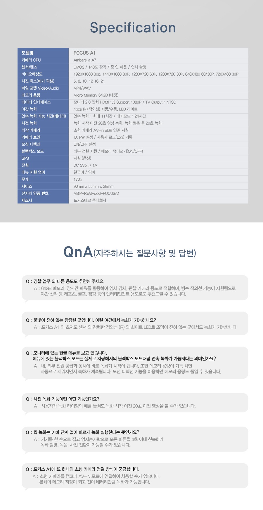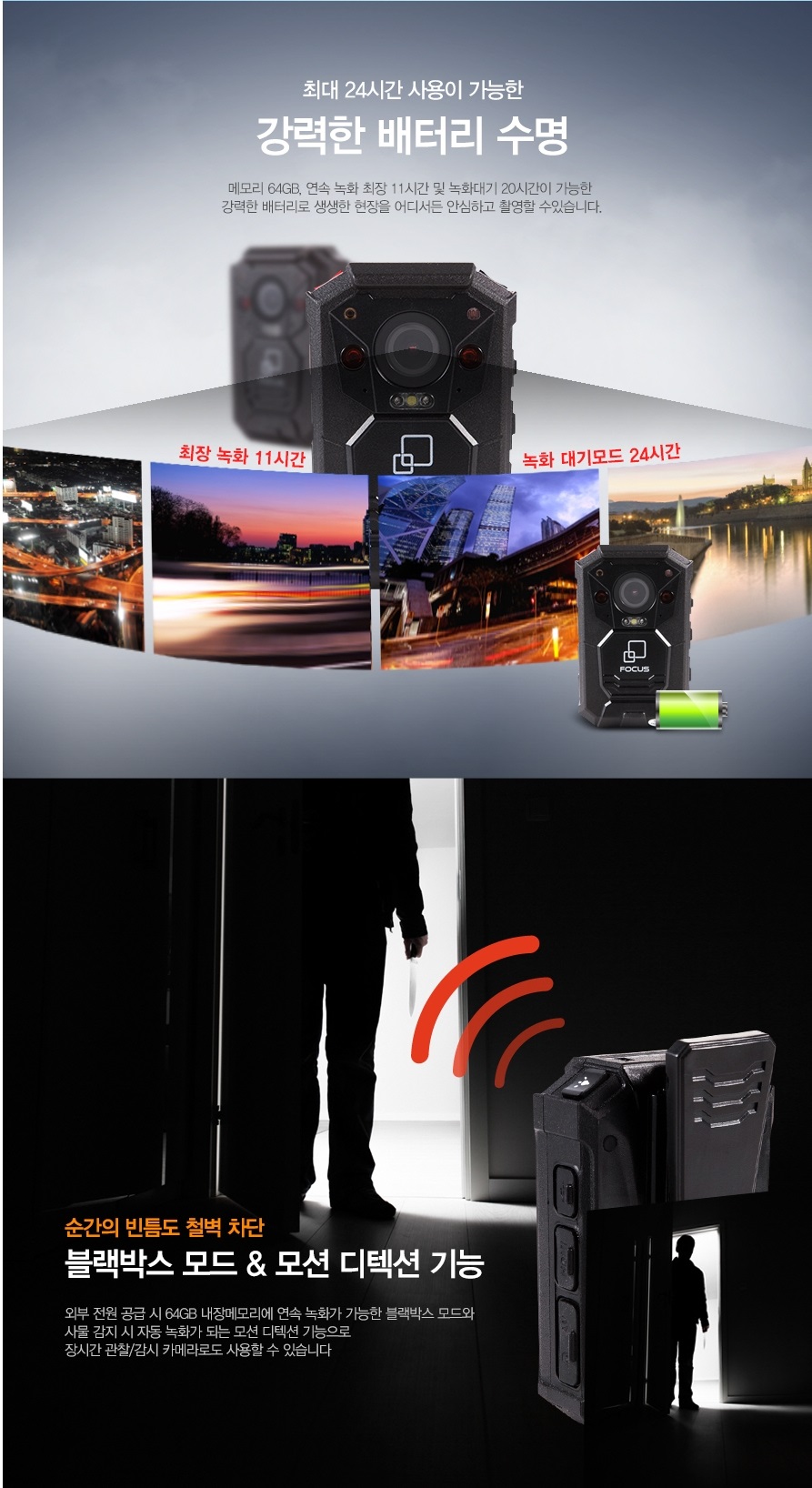 포커스A1 액션캠 바디캠 스포츠카메라 자전거 바이크 야간적외선 11시간연속촬영 보조캠포함