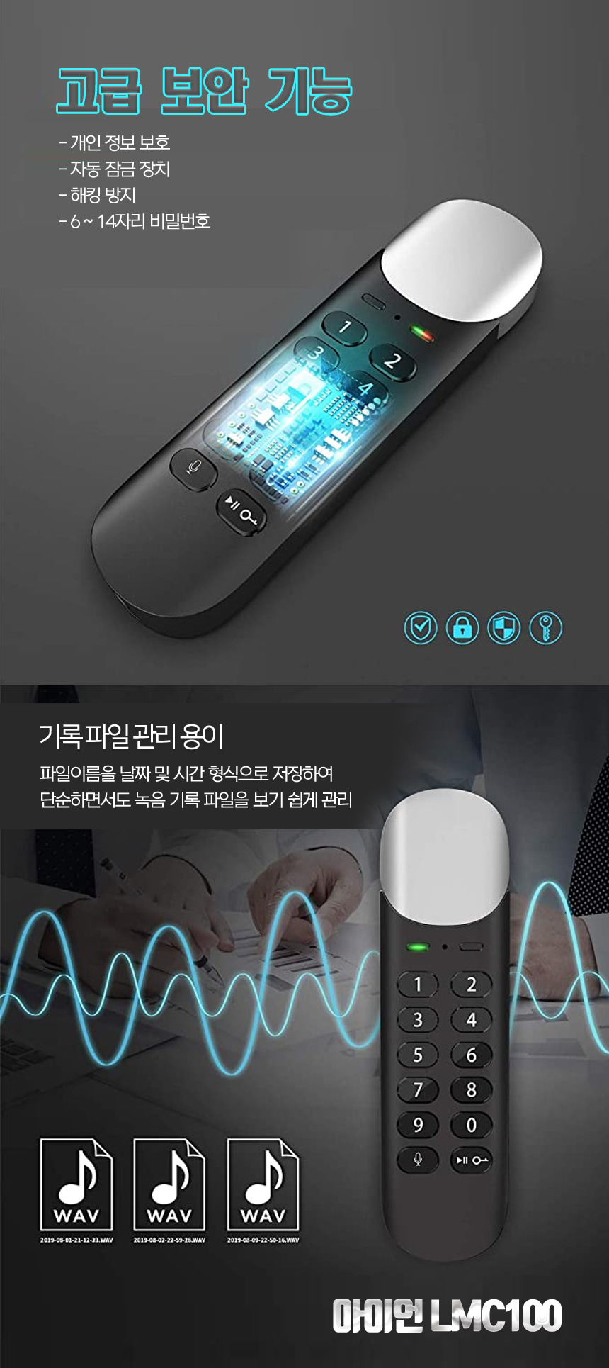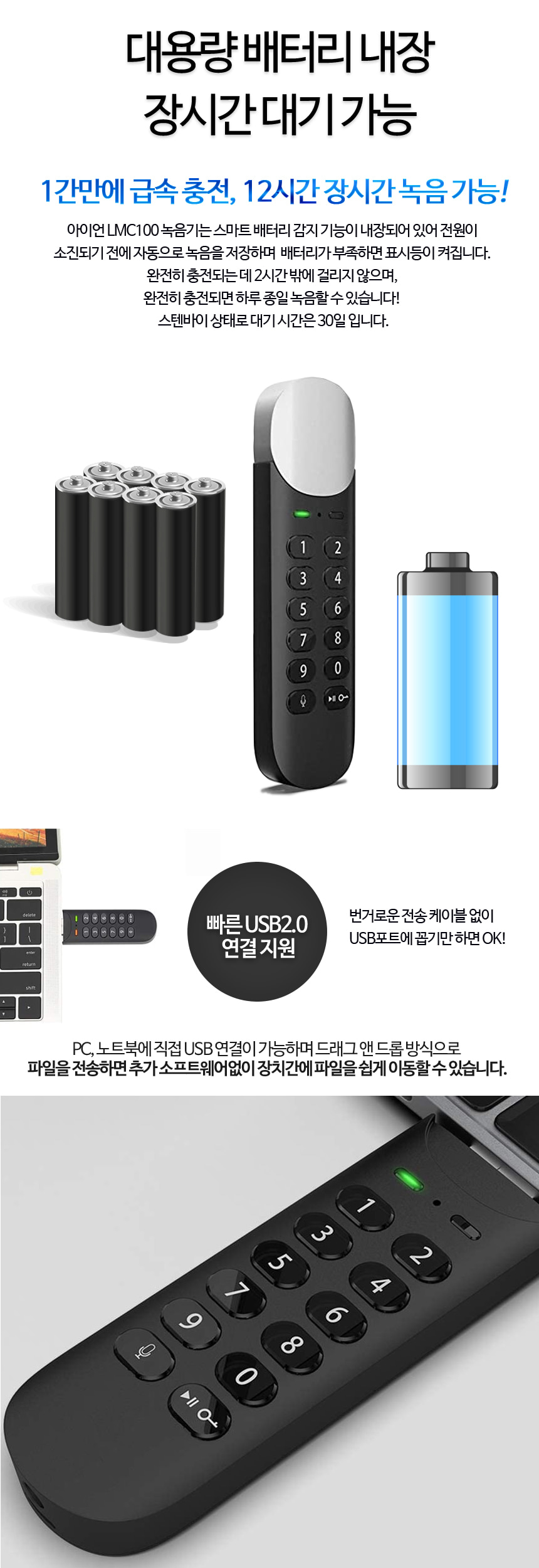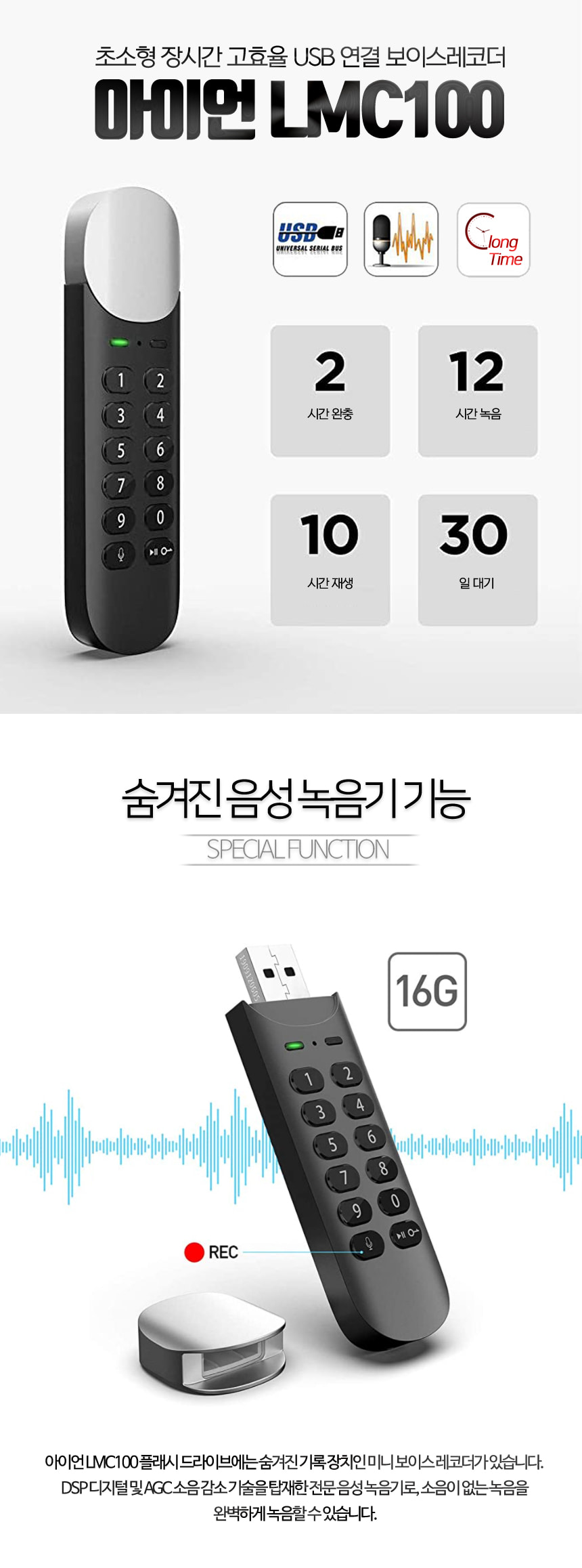 LMC-100 계산기녹음기 USB녹음기 고음질 장시간 녹음가능 VOS 30일대기작동