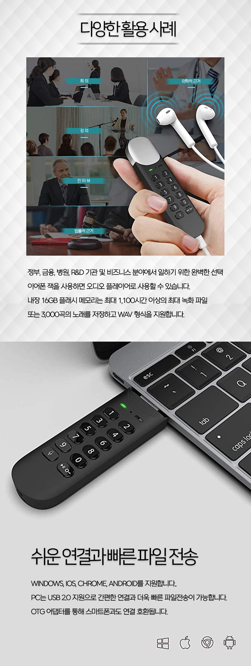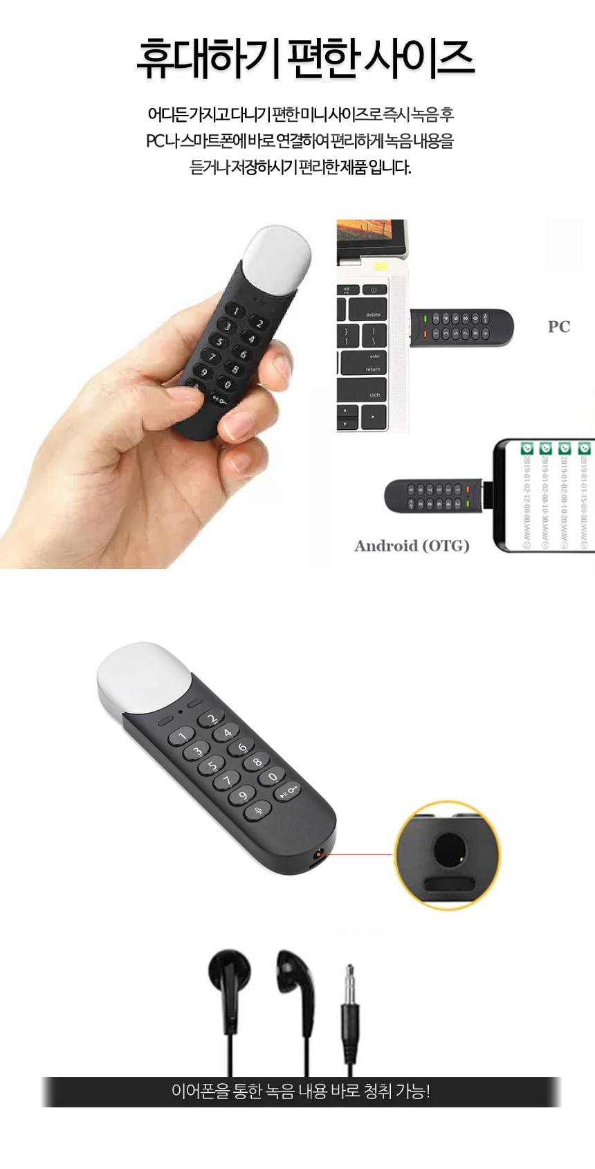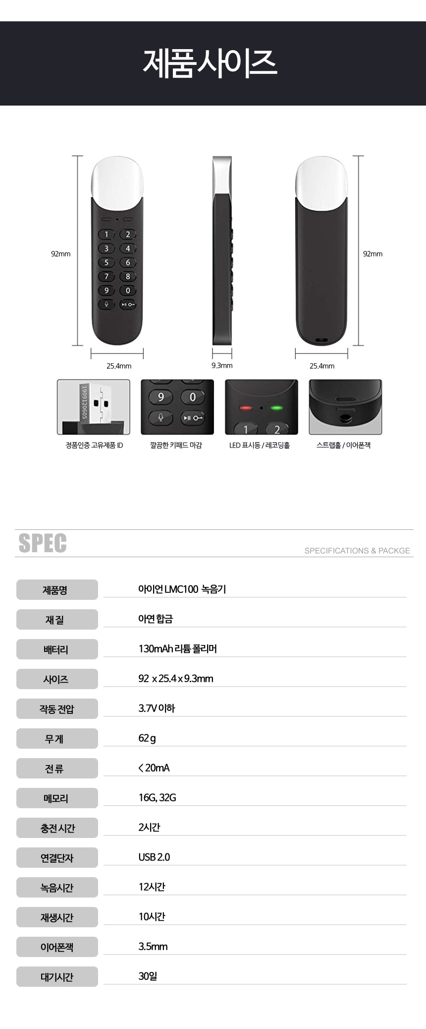 LMC-100 계산기녹음기 USB녹음기 고음질 장시간 녹음가능 VOS 30일대기작동