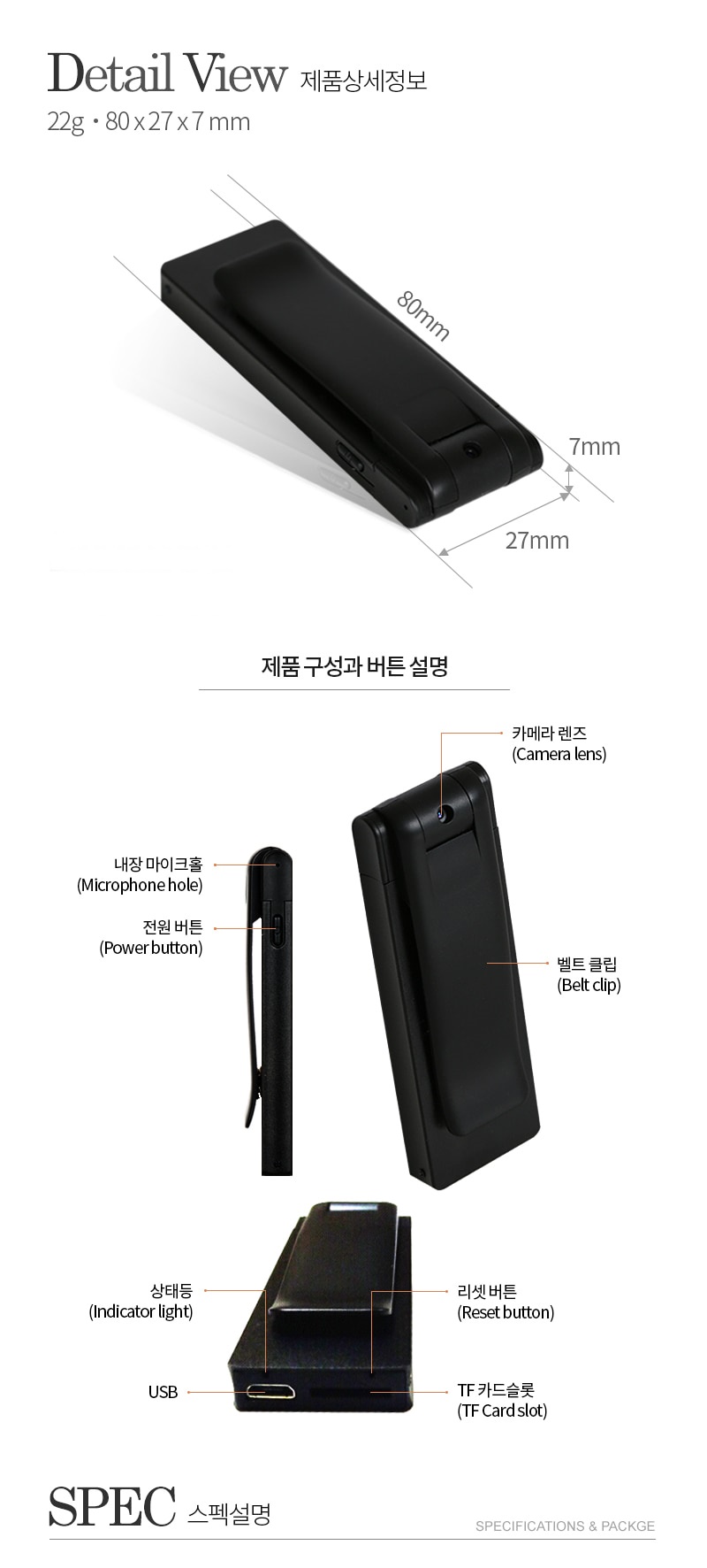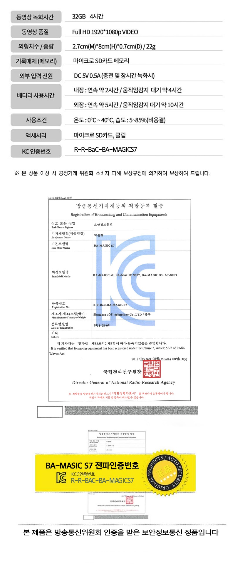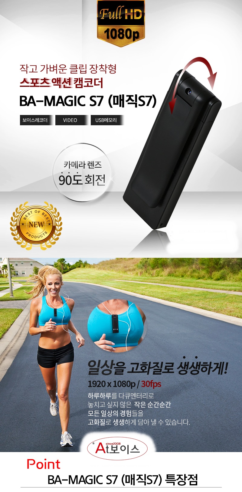BA-MAGIC S7 액션캠 적외선야간 카메라 바디카메라 FULL HD 30P