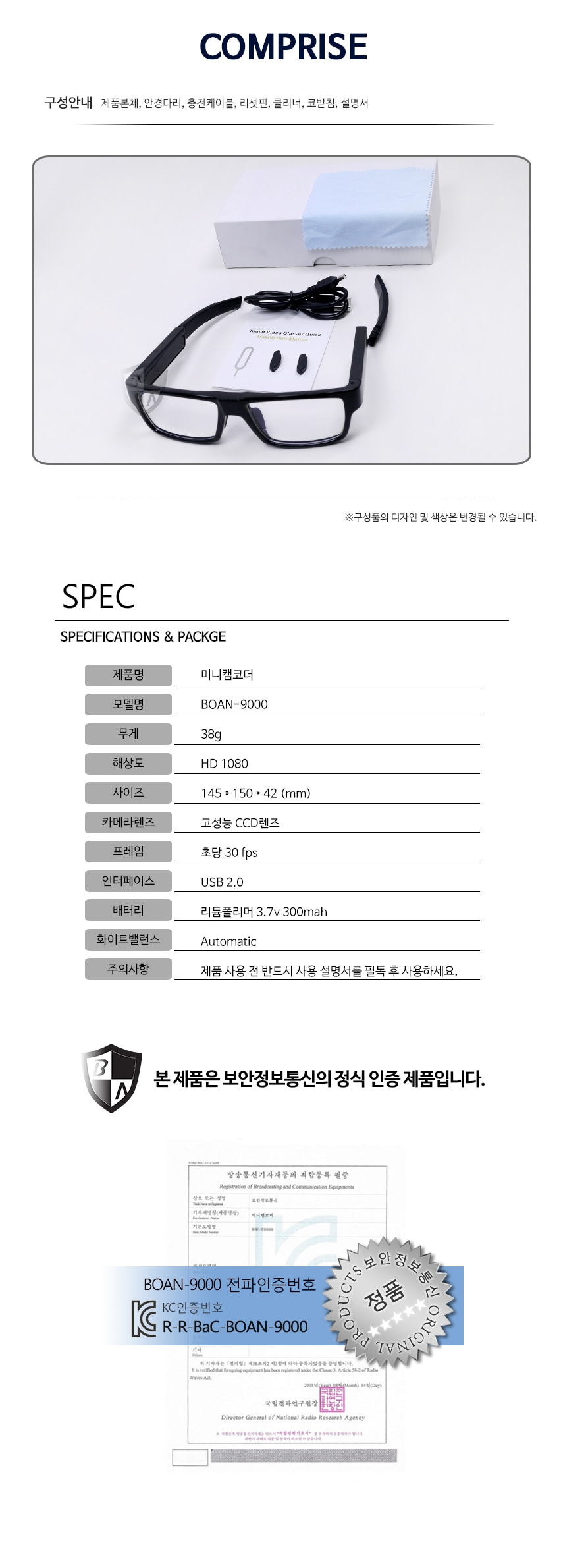 BOAN-9000 안경카메라