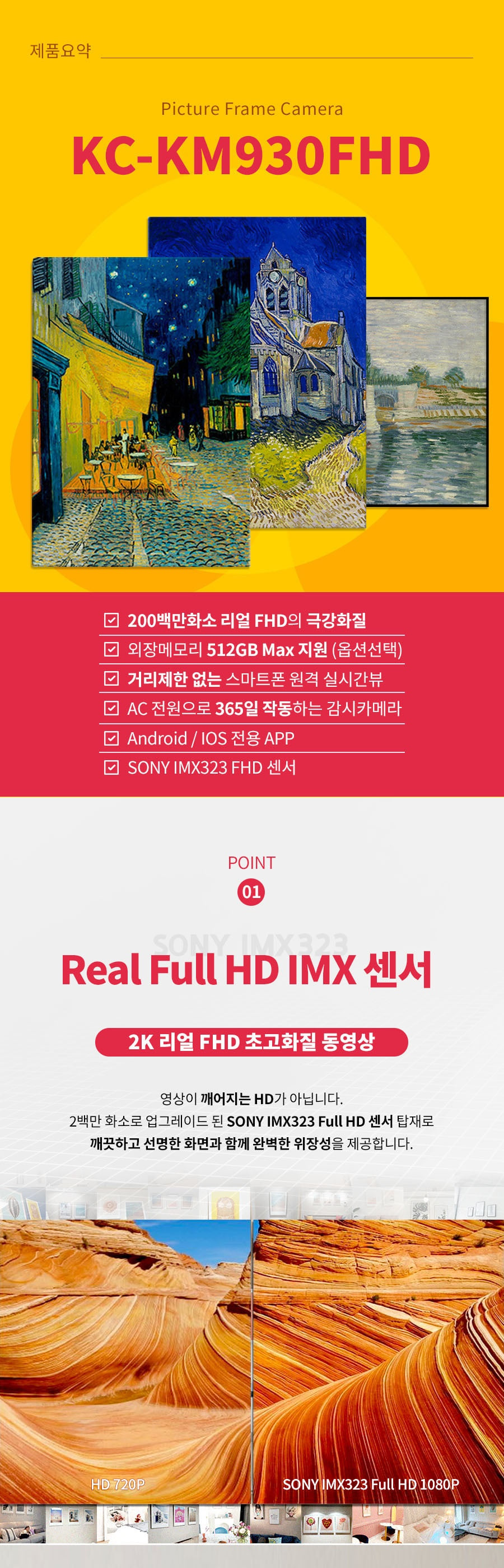 액자형 캠코더 카메라 리얼캠코더 스마트폰원격감시 200만화소 초극강화질 라이브 WIFI 오버라이트 365일감시 512GB지원