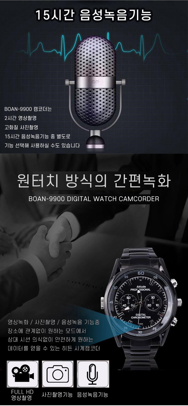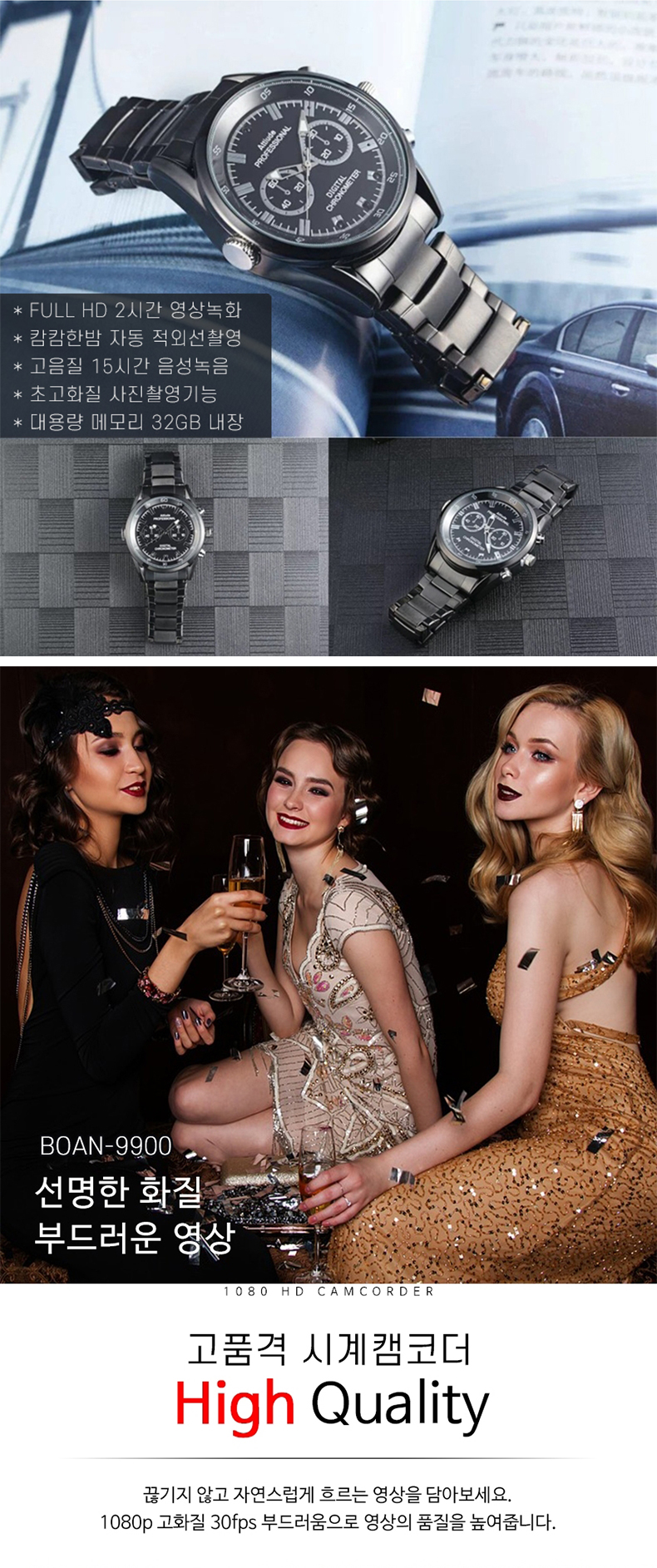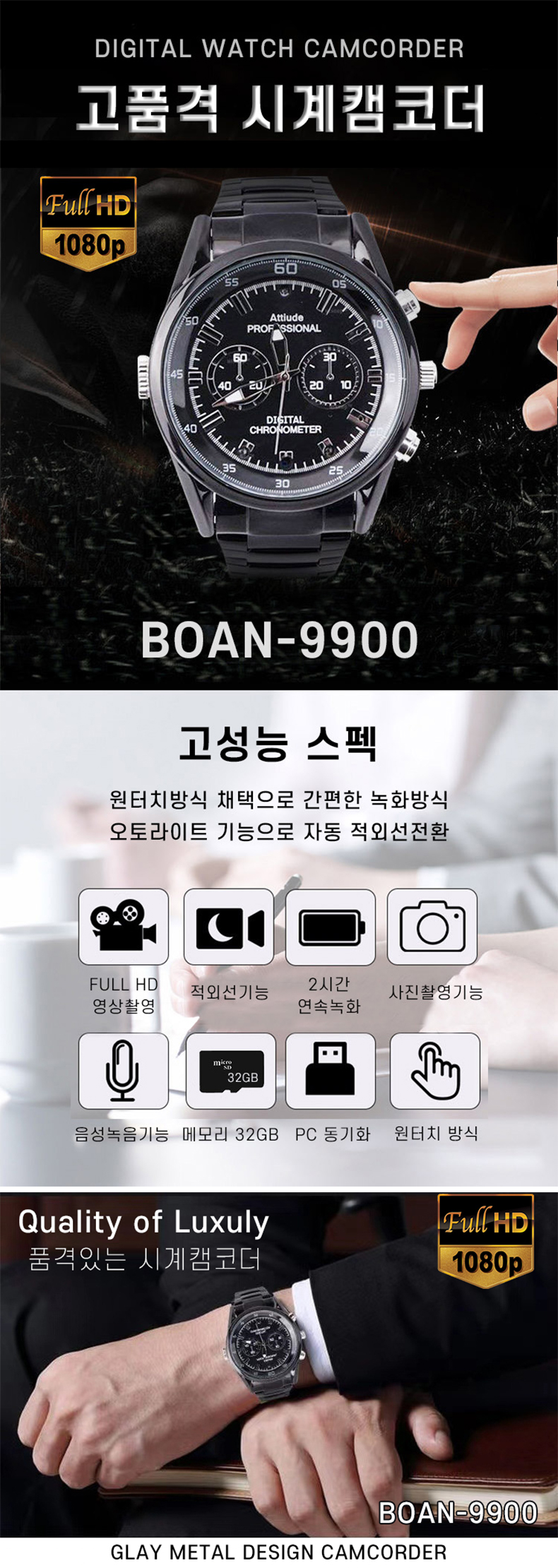 BOAN-9900 손목시계캠코더 시계카메라 완충 2시간 연속 32GB 바늘타입
