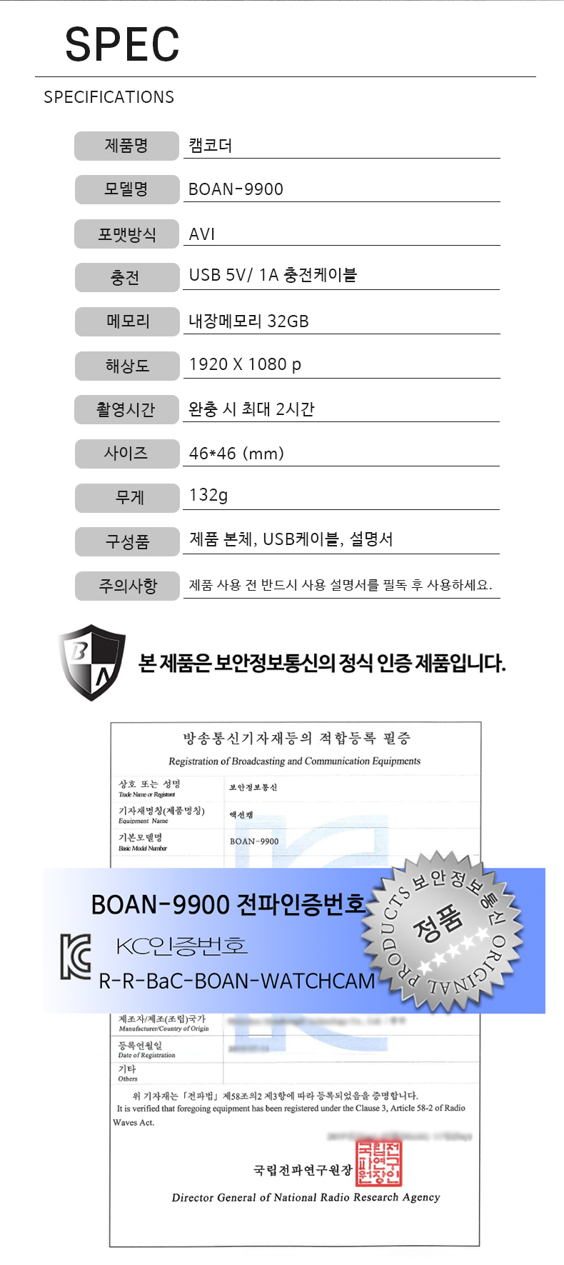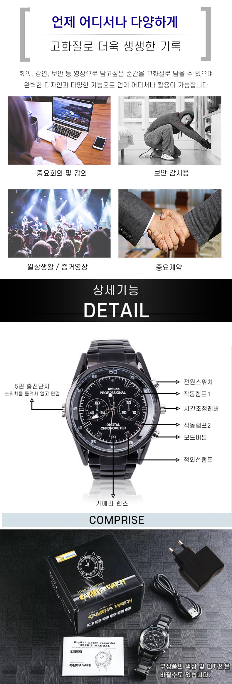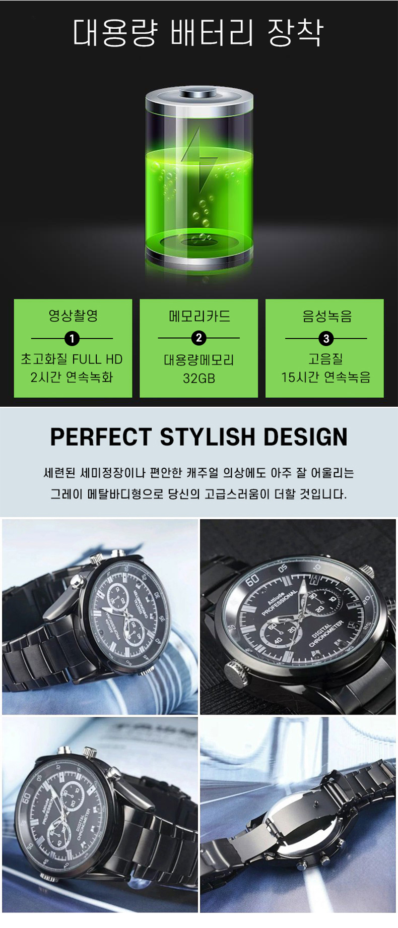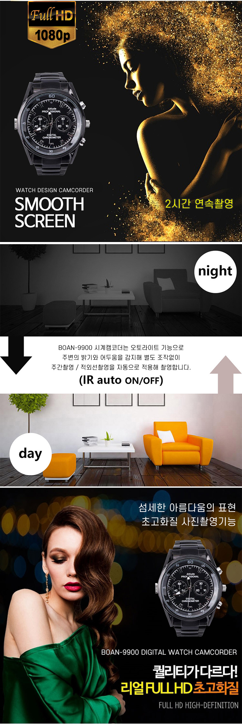 BOAN-9900 손목시계캠코더 시계카메라 완충 2시간 연속 32GB 바늘타입