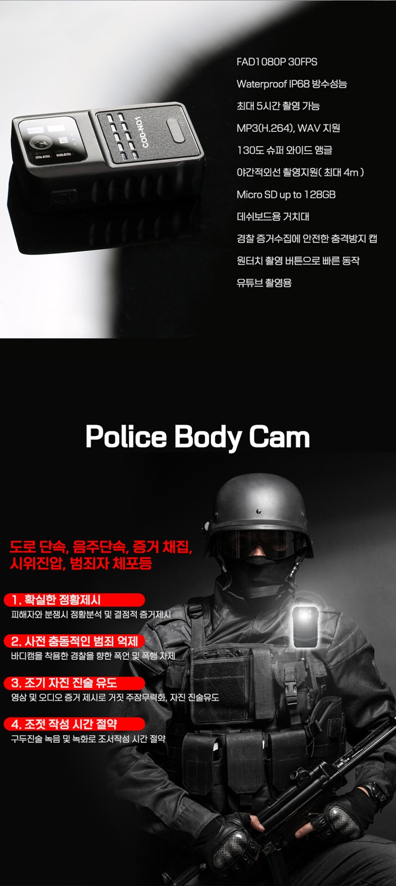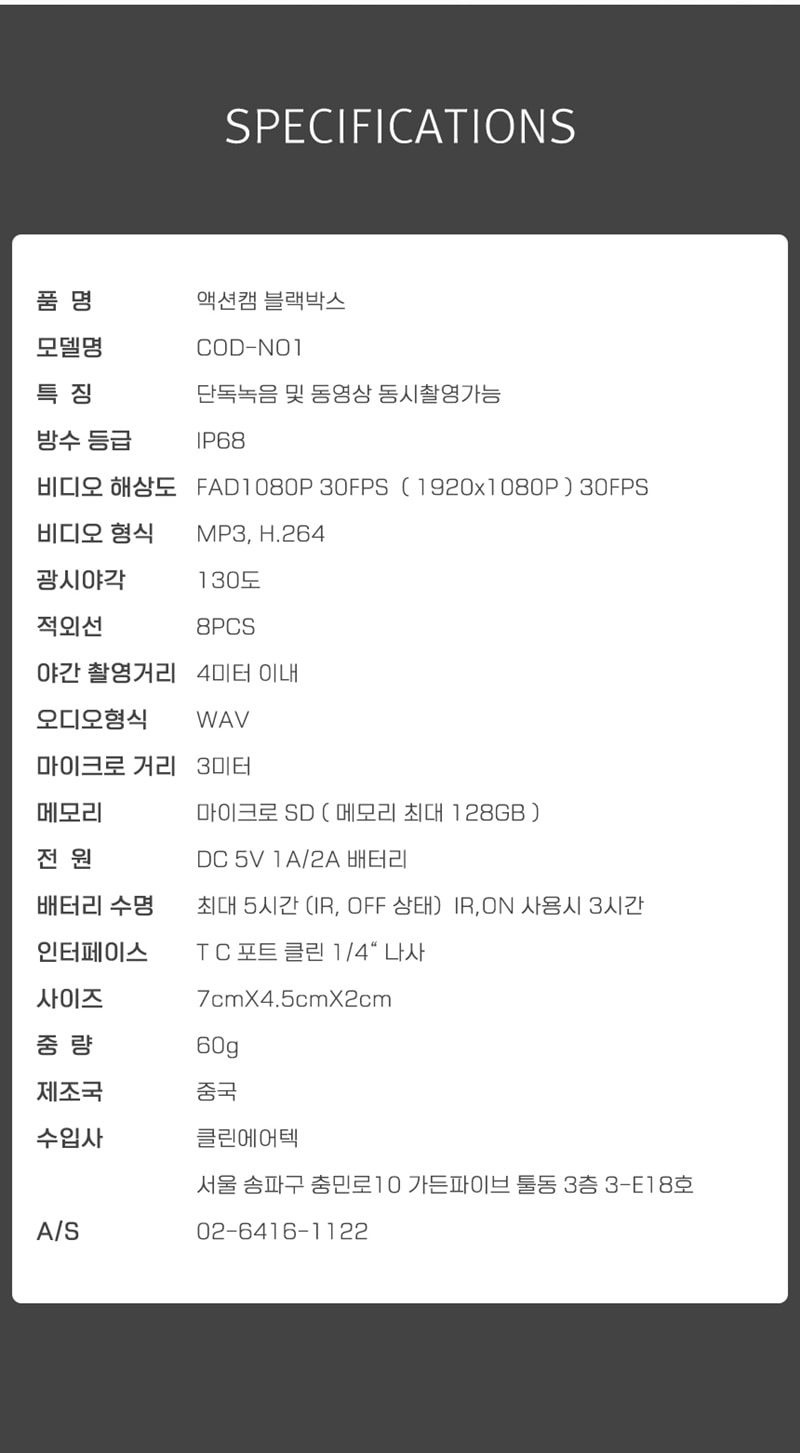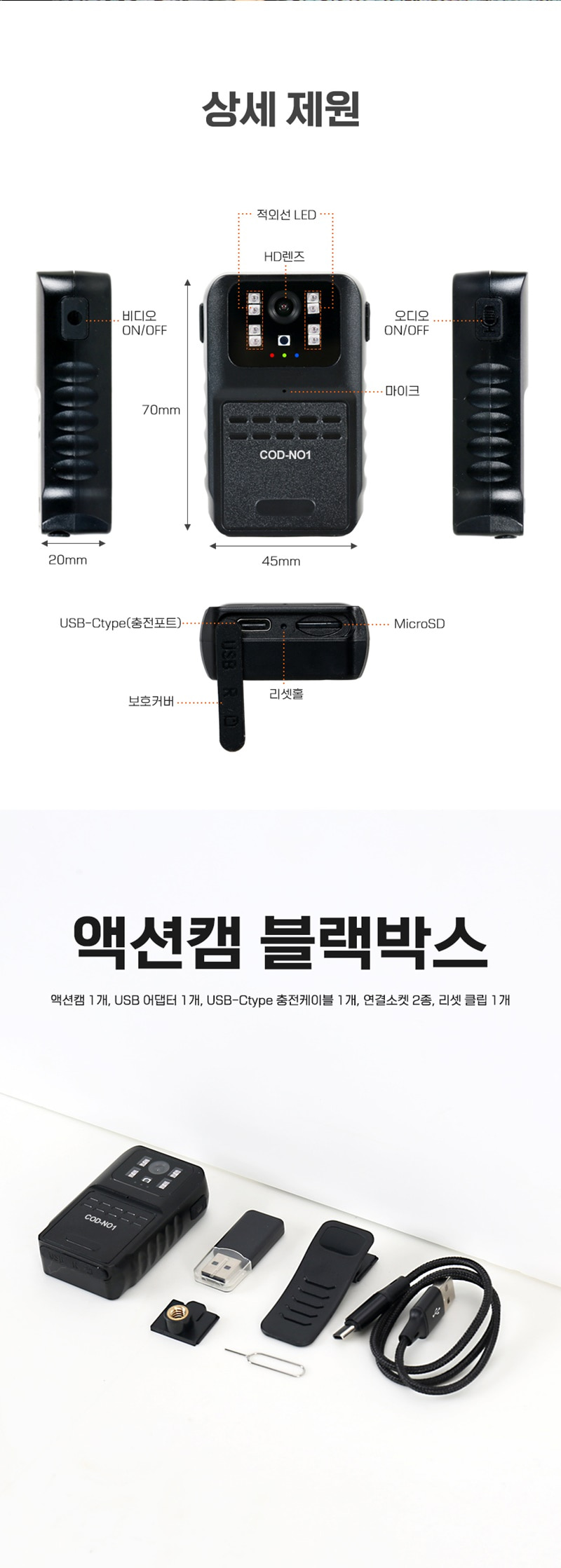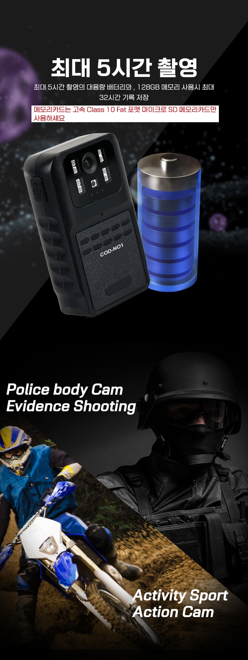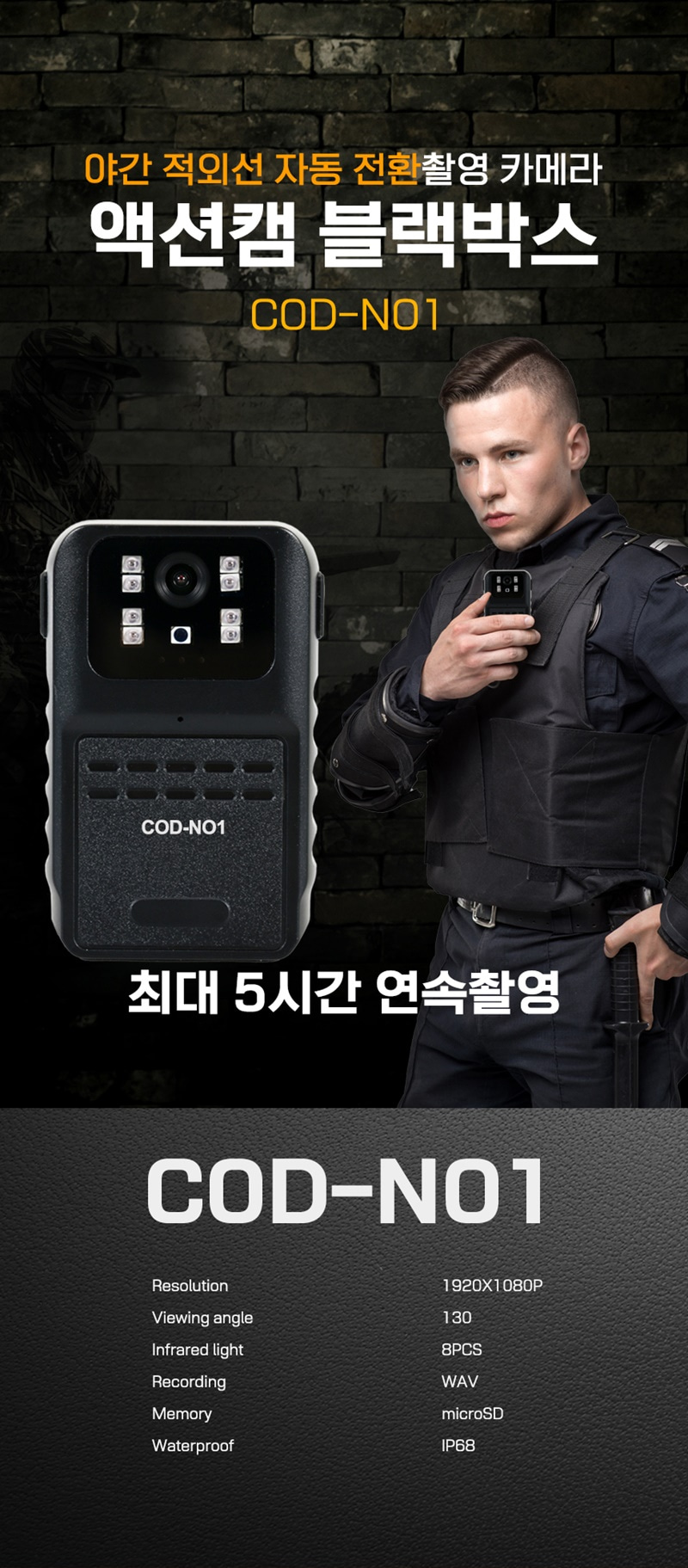 바디캠 스포츠 액션카메라 액션캠 COD-N1 야간적외선촬영 FULL HD 32GB