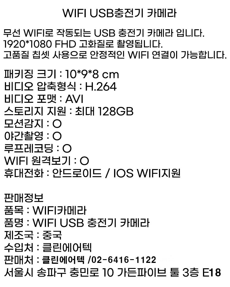(해외배송) 어뎁터 캠코더 충전기카메라 장시간 연속 촬영 와이파이 실시간 CCTV 스마트폰 확인