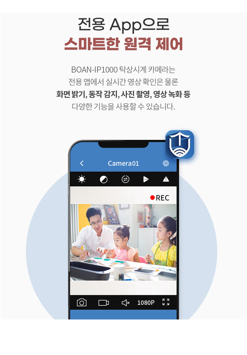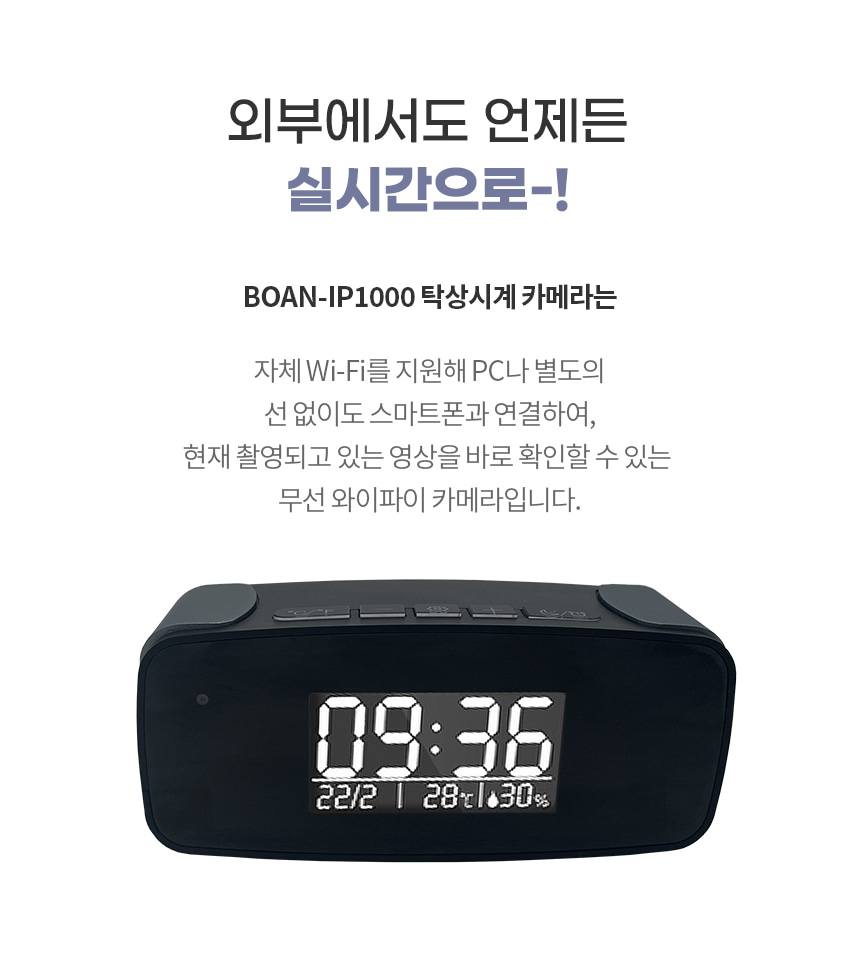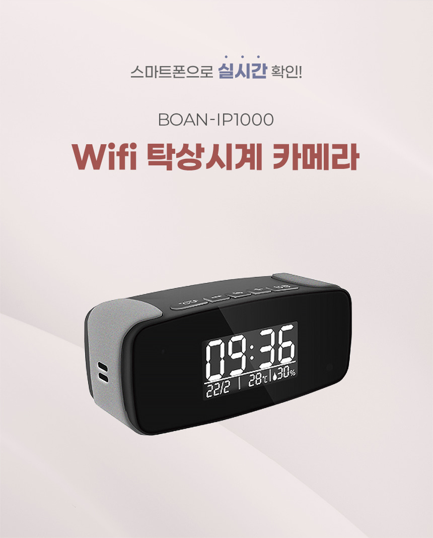 BOAN-IP1000 탁상시계캠코더 감시카메라 와이파이 실시간 전국어디서든 스마트폰 영상 확인