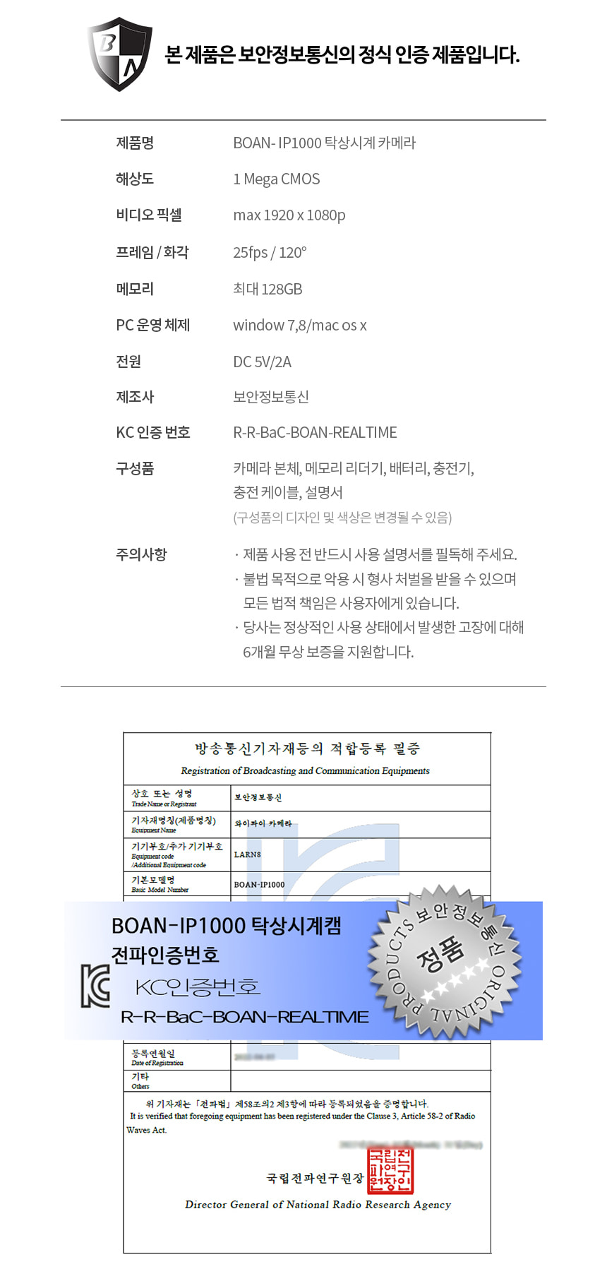 BOAN-IP1000 탁상시계캠코더