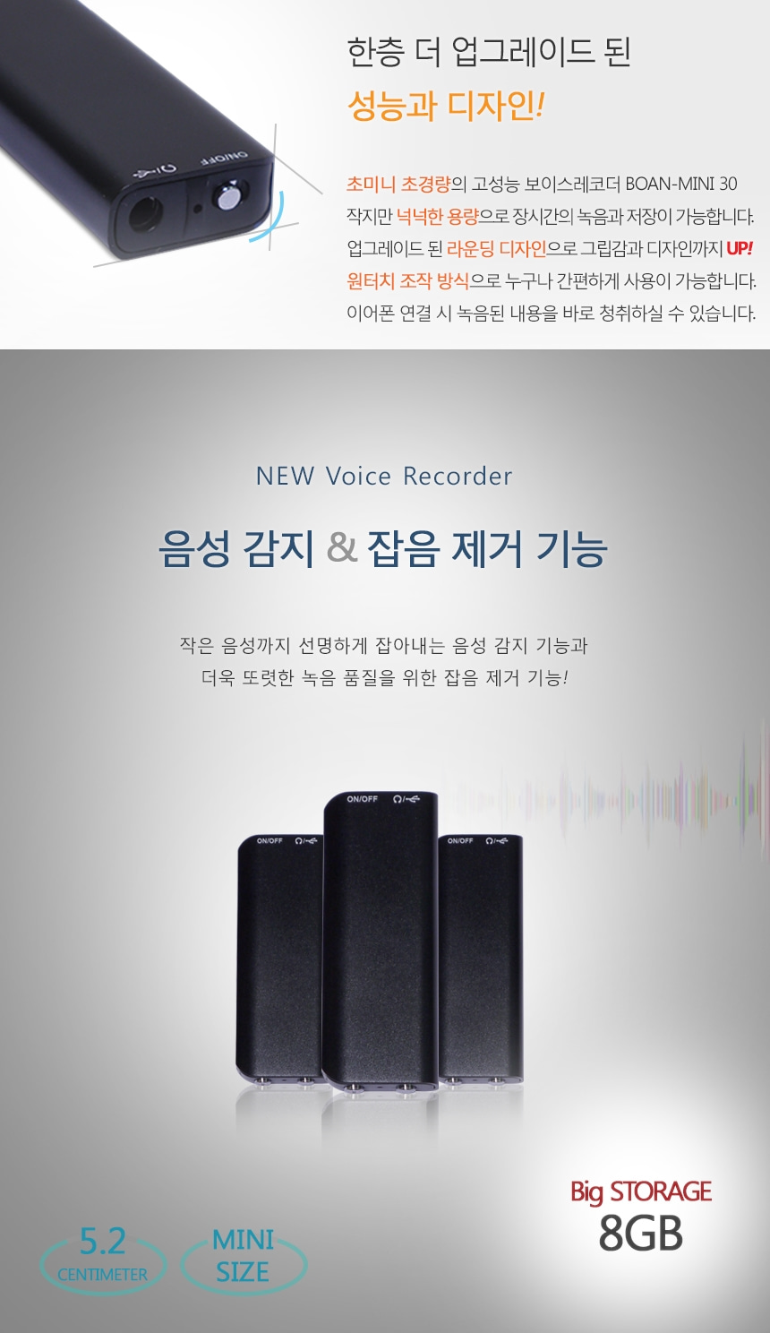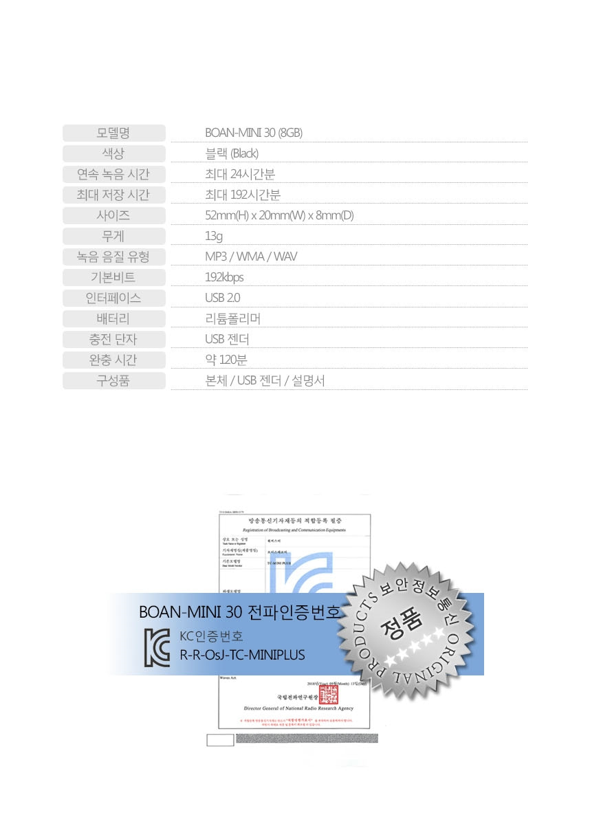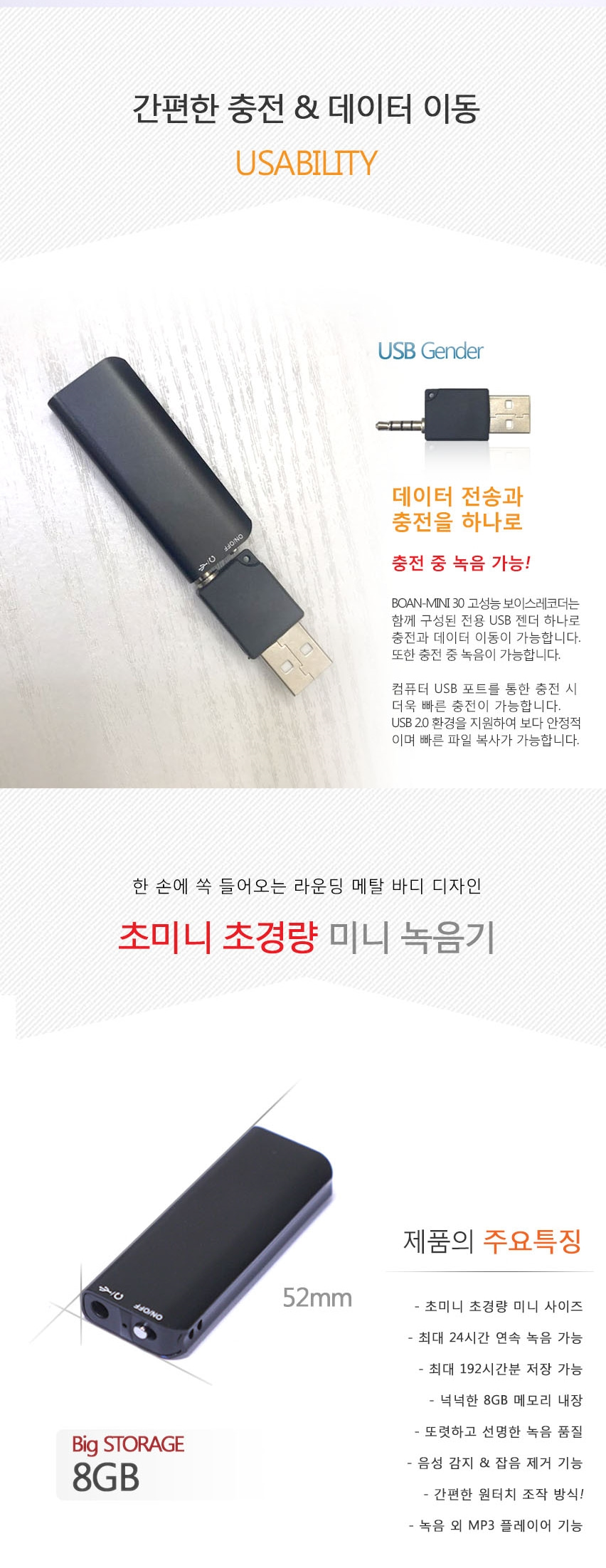 미니녹음기 BA-MINI30 24시간 연속녹음 8GB USB타입