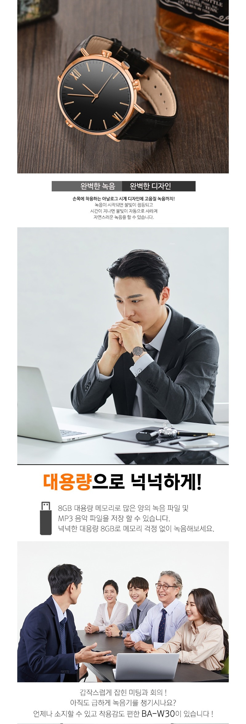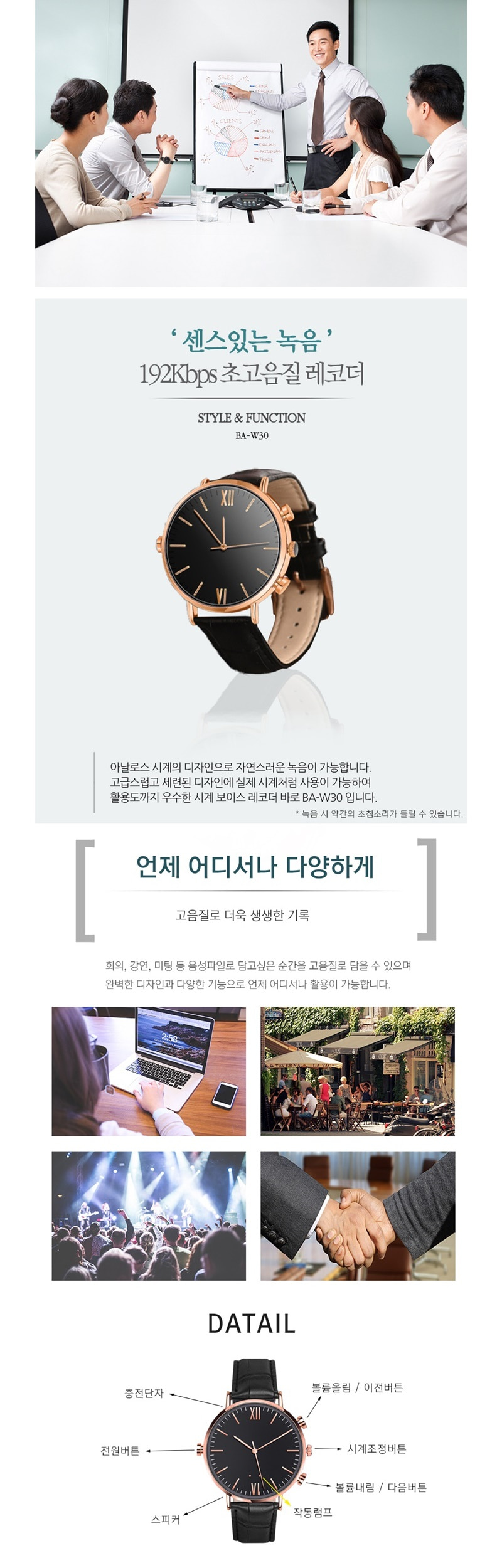 BOAN-W30 시계녹음기 손목시계 워치형 30시간 연속사용 매장 업무 비즈니스용