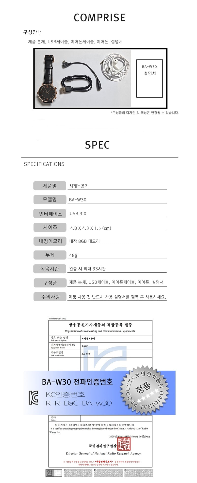 BOAN-W30 시계녹음기