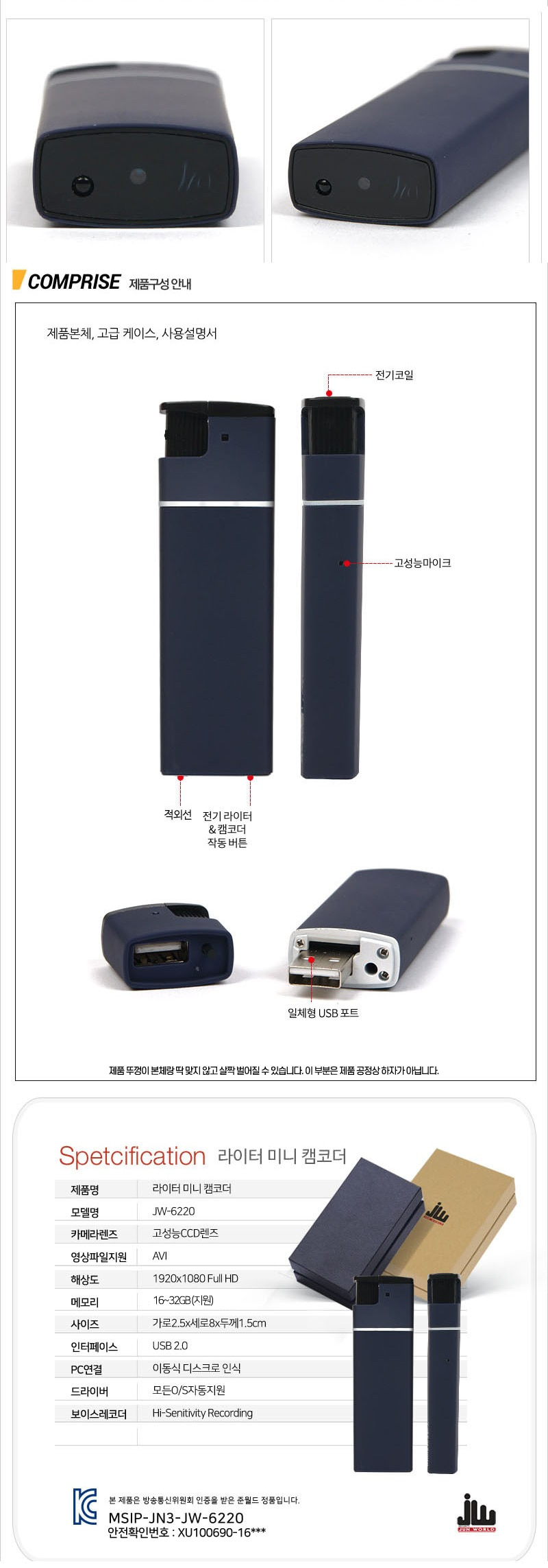 스파이캠 USB캠코더 리얼카메라 증거수집 탐정 JW-5800 4시간촬영가능