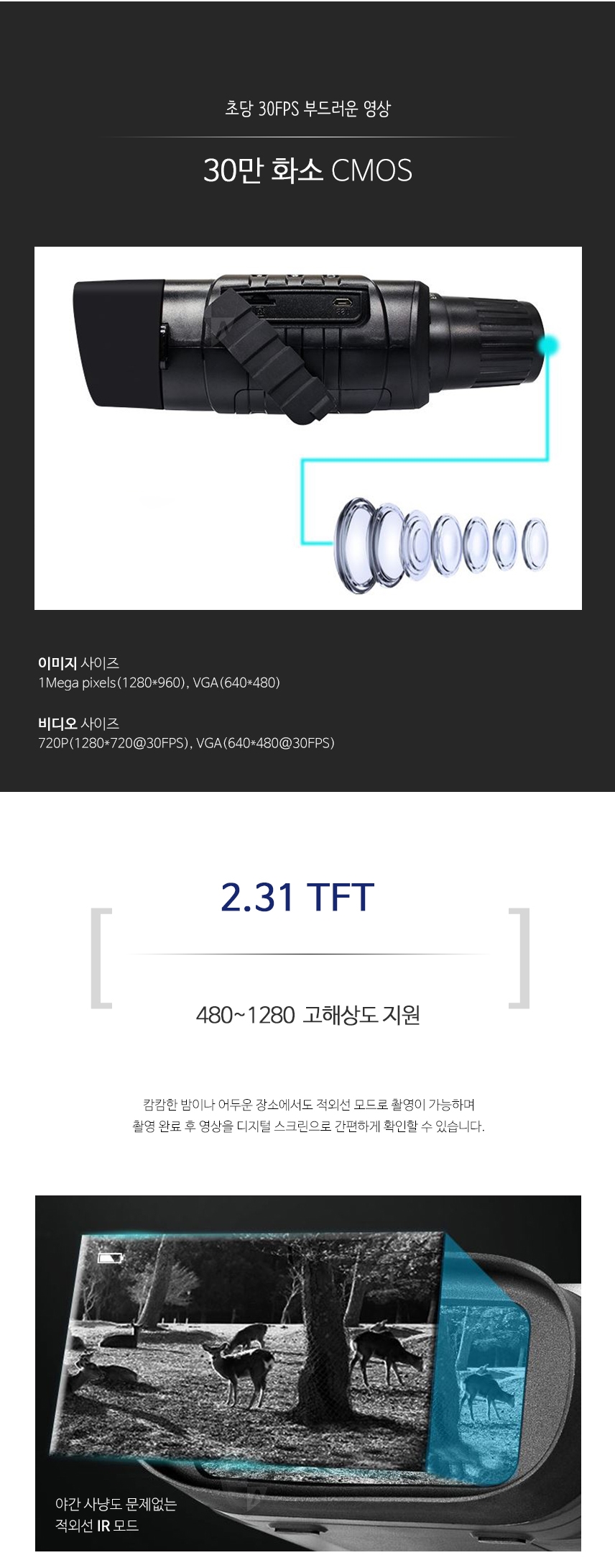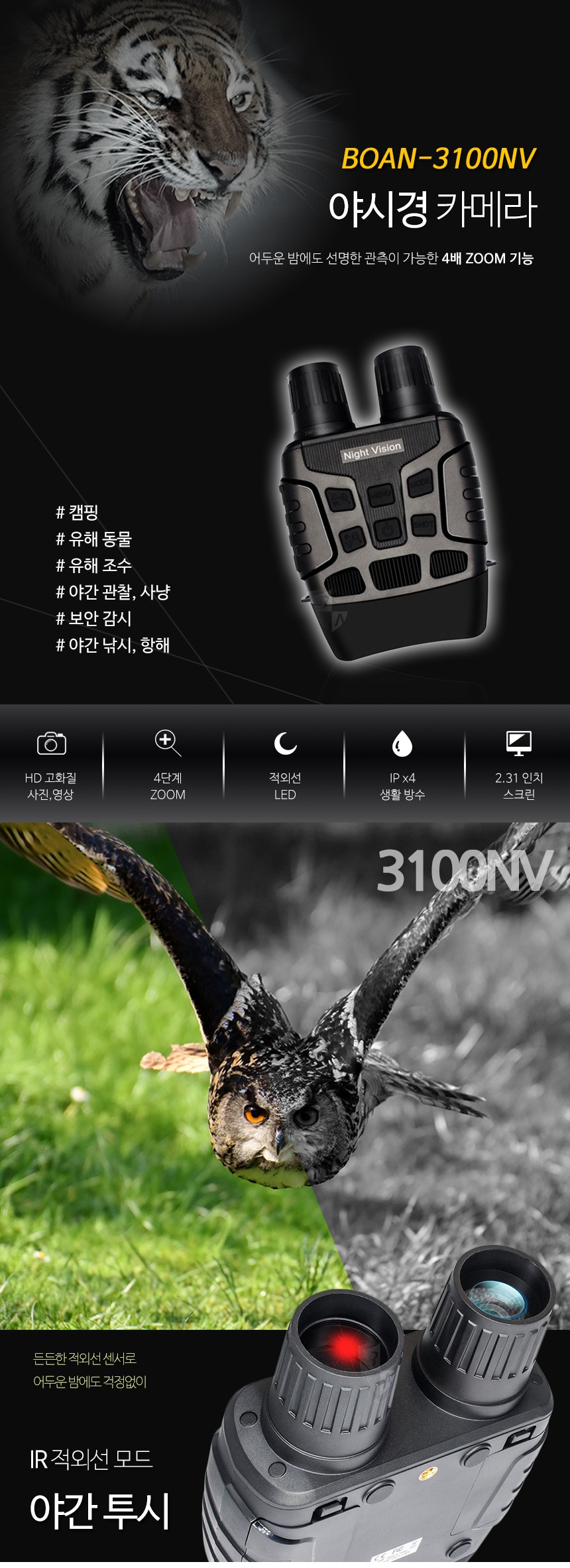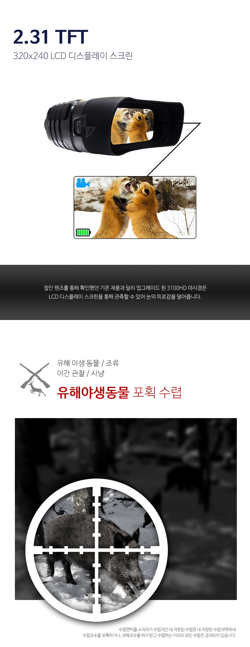 3100NV 야시경캠코더 야간야시경 카메라 사냥용 야시경