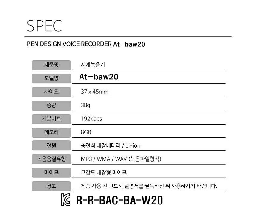 BA-W20 장시간 55시간 연속녹음기 USB타입 스마트폰 바로 재생가능 녹음기