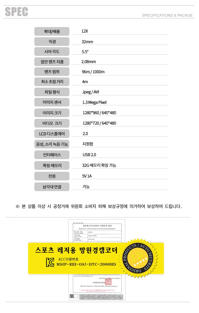 DTC 2000HD 망원경캠코더 망원경카메라 스포츠관람 스포츠관람망원카메라