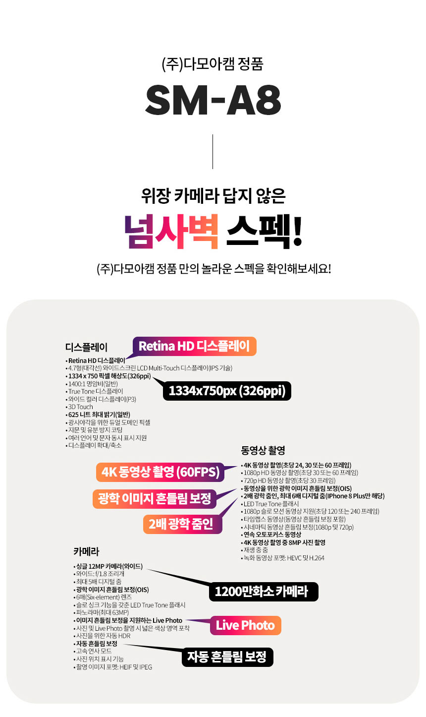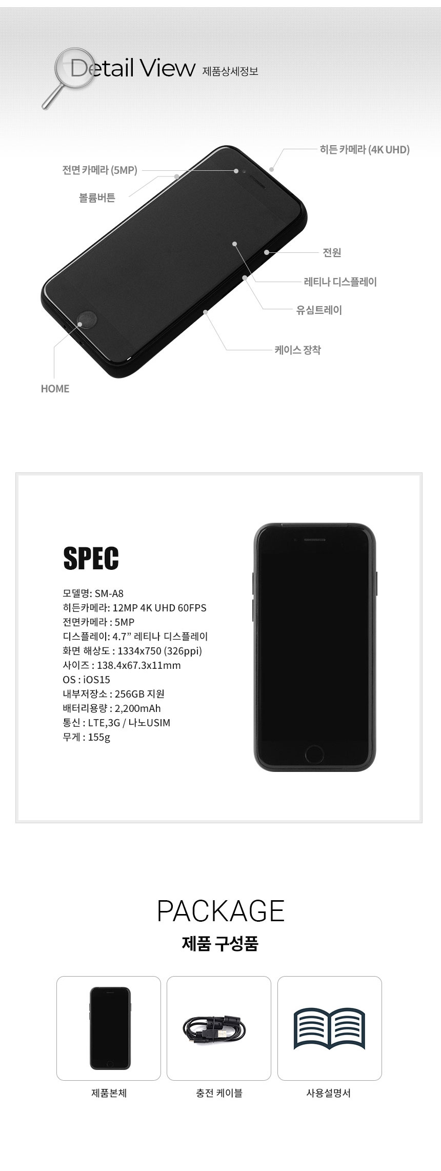 SM-A8 스마트폰카메라 위치변경 특수탐정 흥신소 카메라 유심사용가능 512GB 장시간촬영