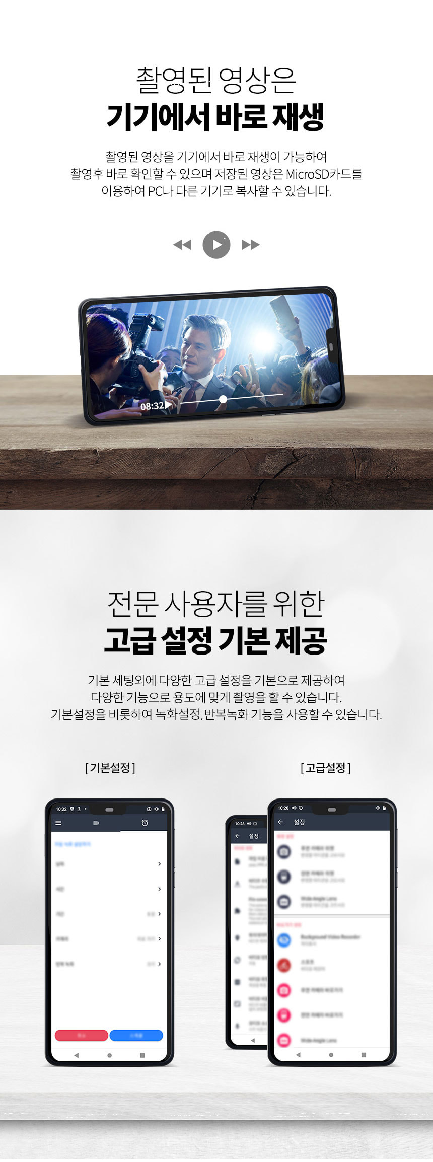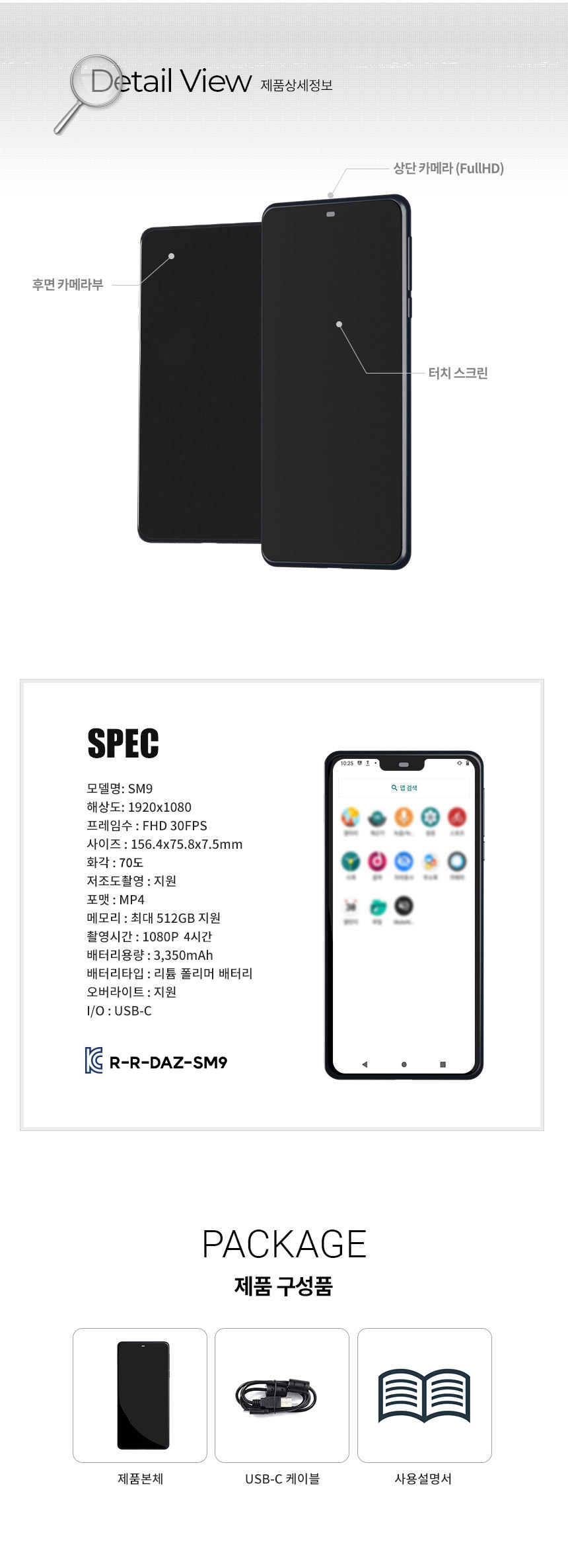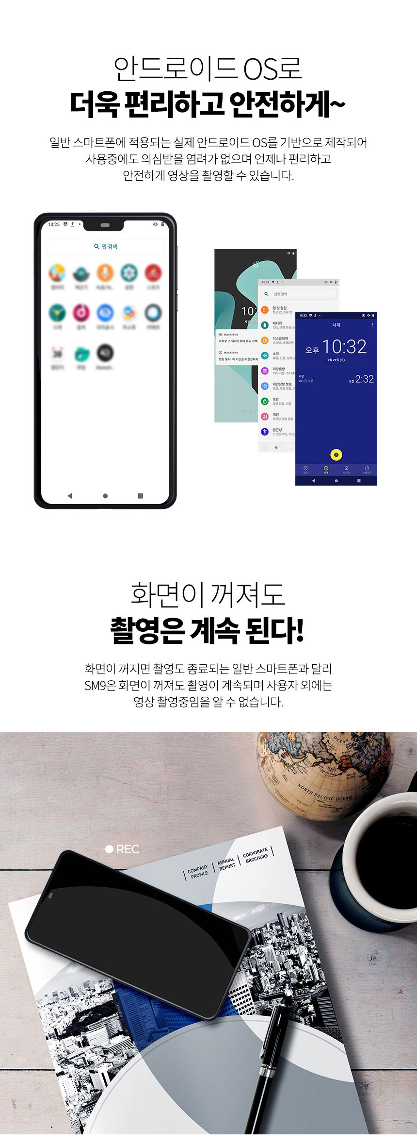 SM9 스마트폰캠코더 눕혀서 촬영카메라 스텔스모드 10시간 연속촬영가능