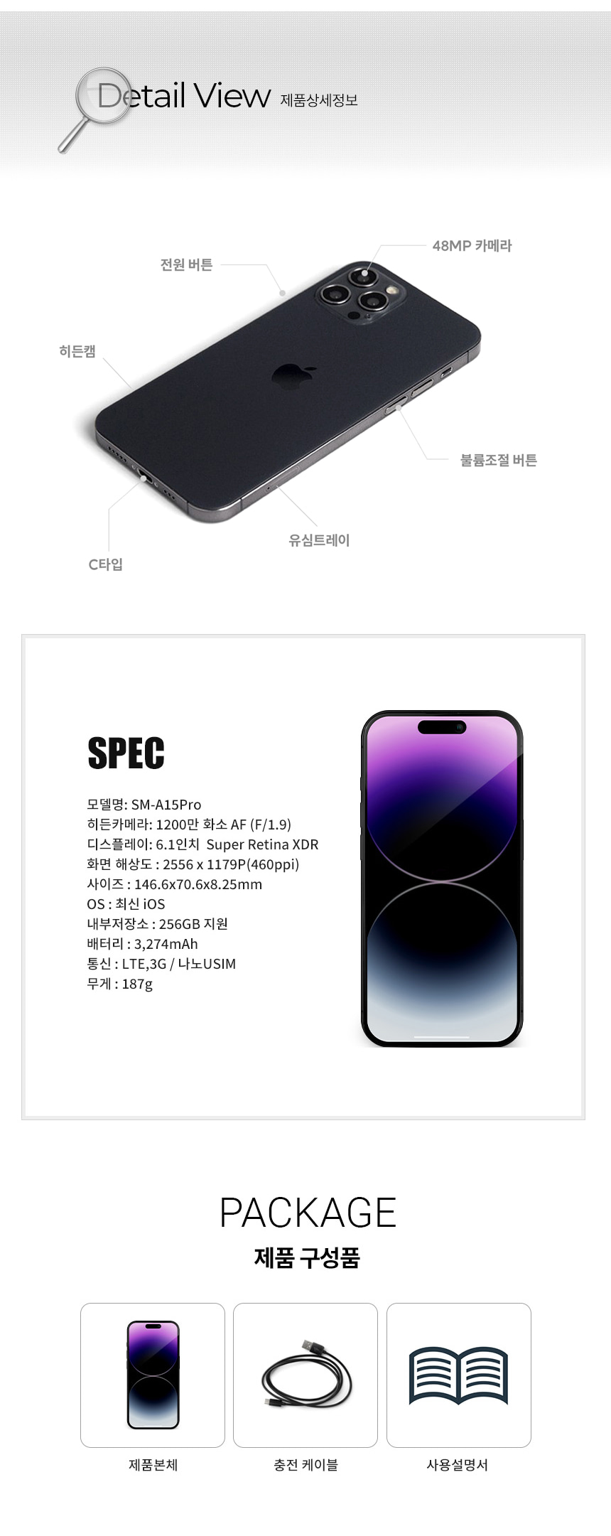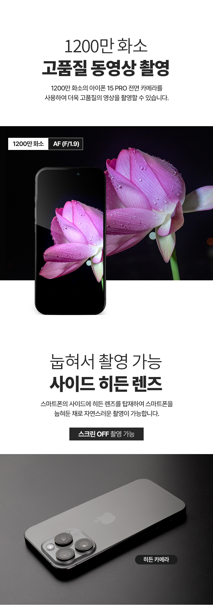 아이폰15 프로 스마트폰카메라 위치변경 특수탐정 흥신소 카메라 유심사용가능 512GB 장시간촬영