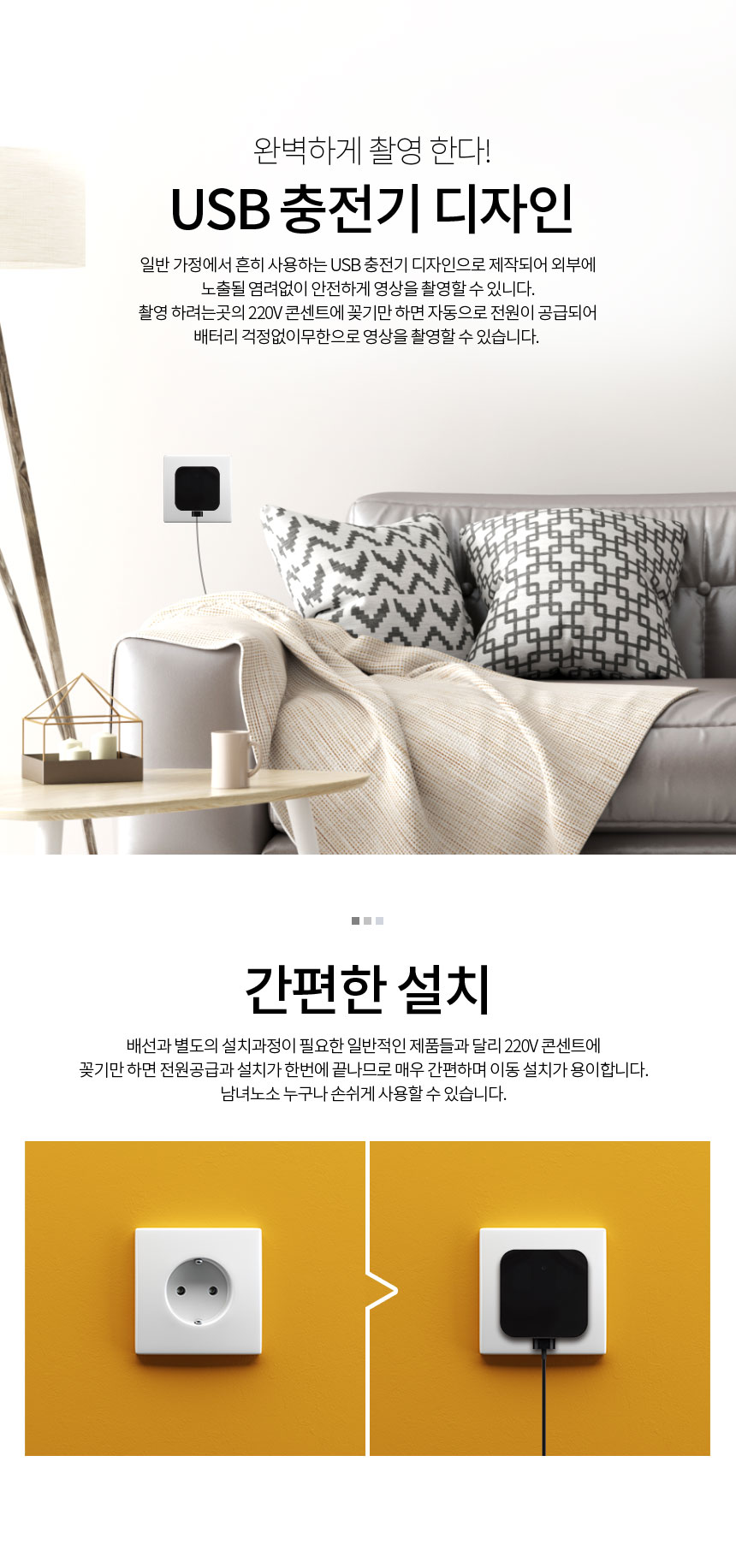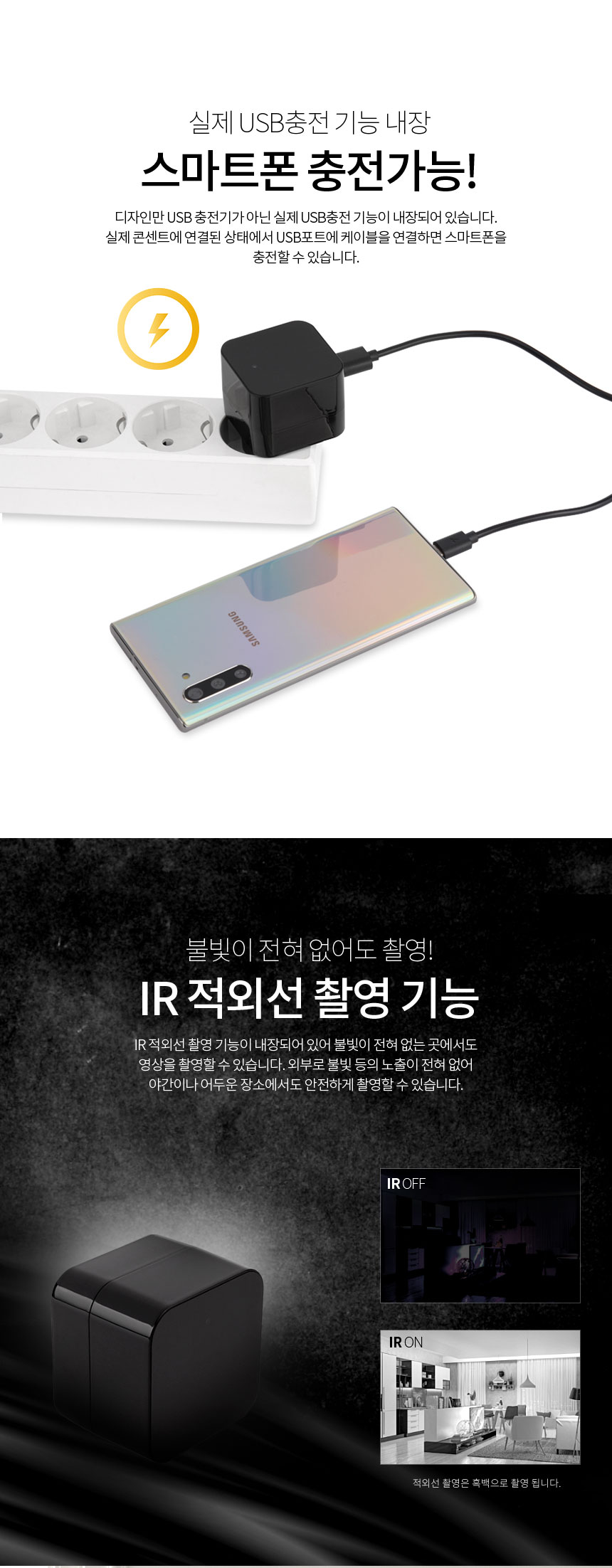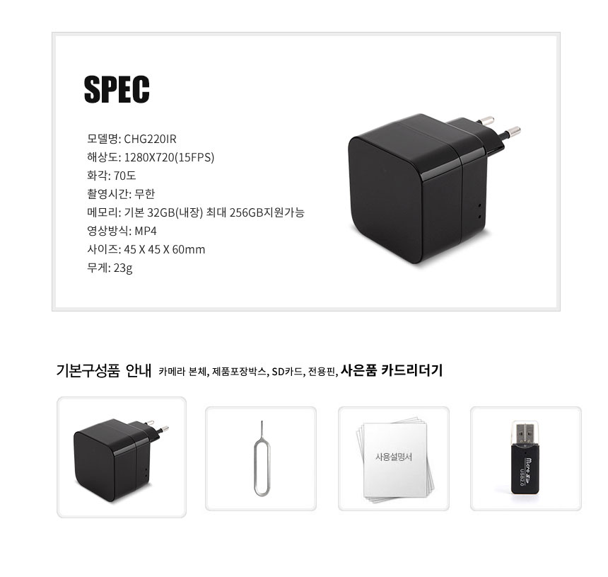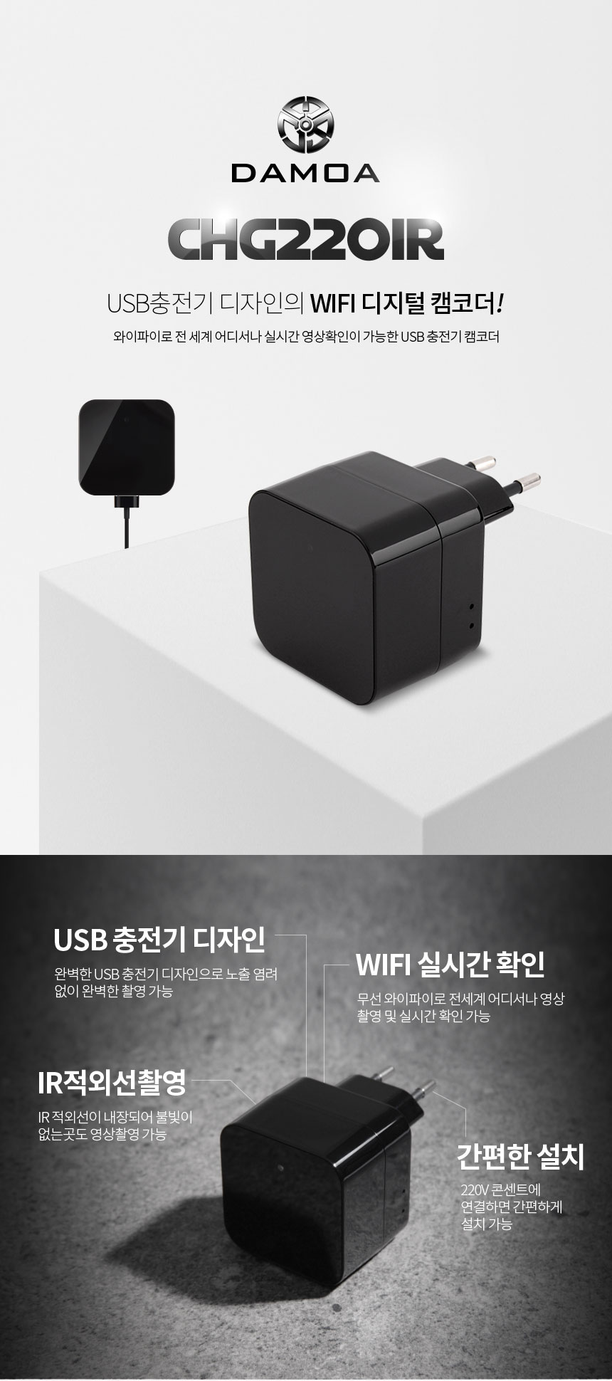 CHG220IR 충전기캠 어뎁터캠코더 장시간 365일 와이파이 실시간 연속 감시카메라