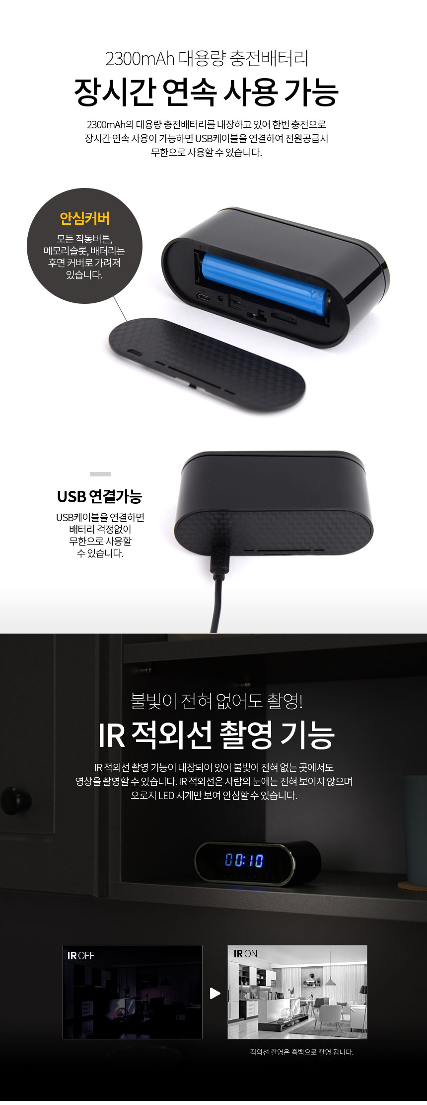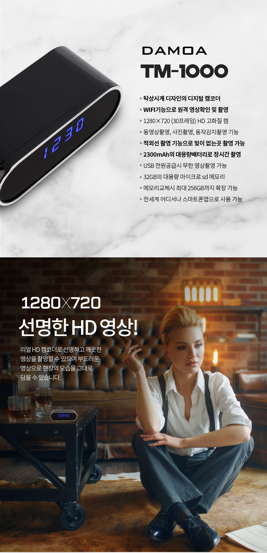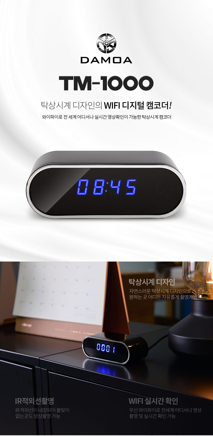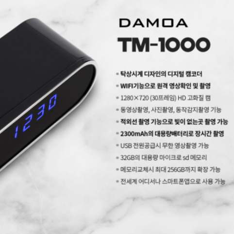 TM-1000 탁상시계캠코더 알람시계카메라 WIFI 디지털시계캠 적외선 256GB