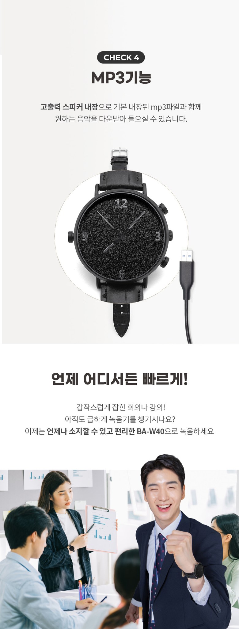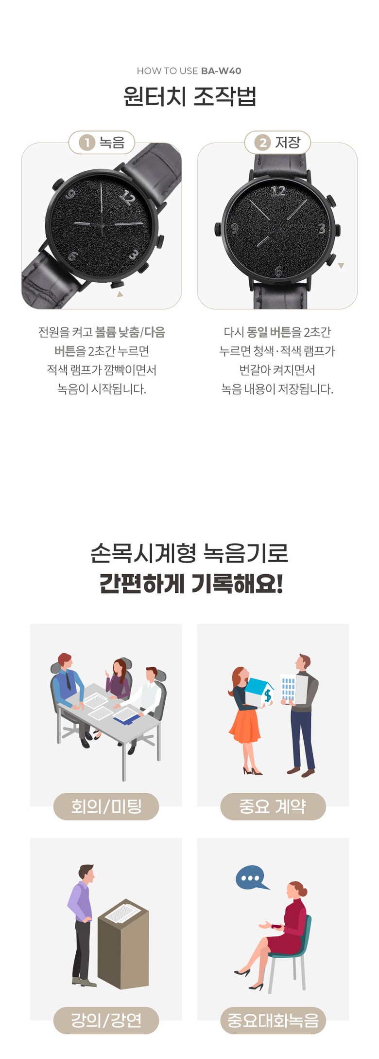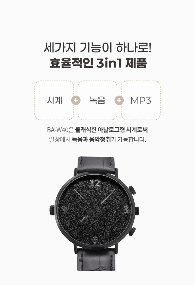 JB-W40 손목시계형녹음기 바늘타입 연속 20시간 녹음가능 정장 업무 매장 분쟁방지용