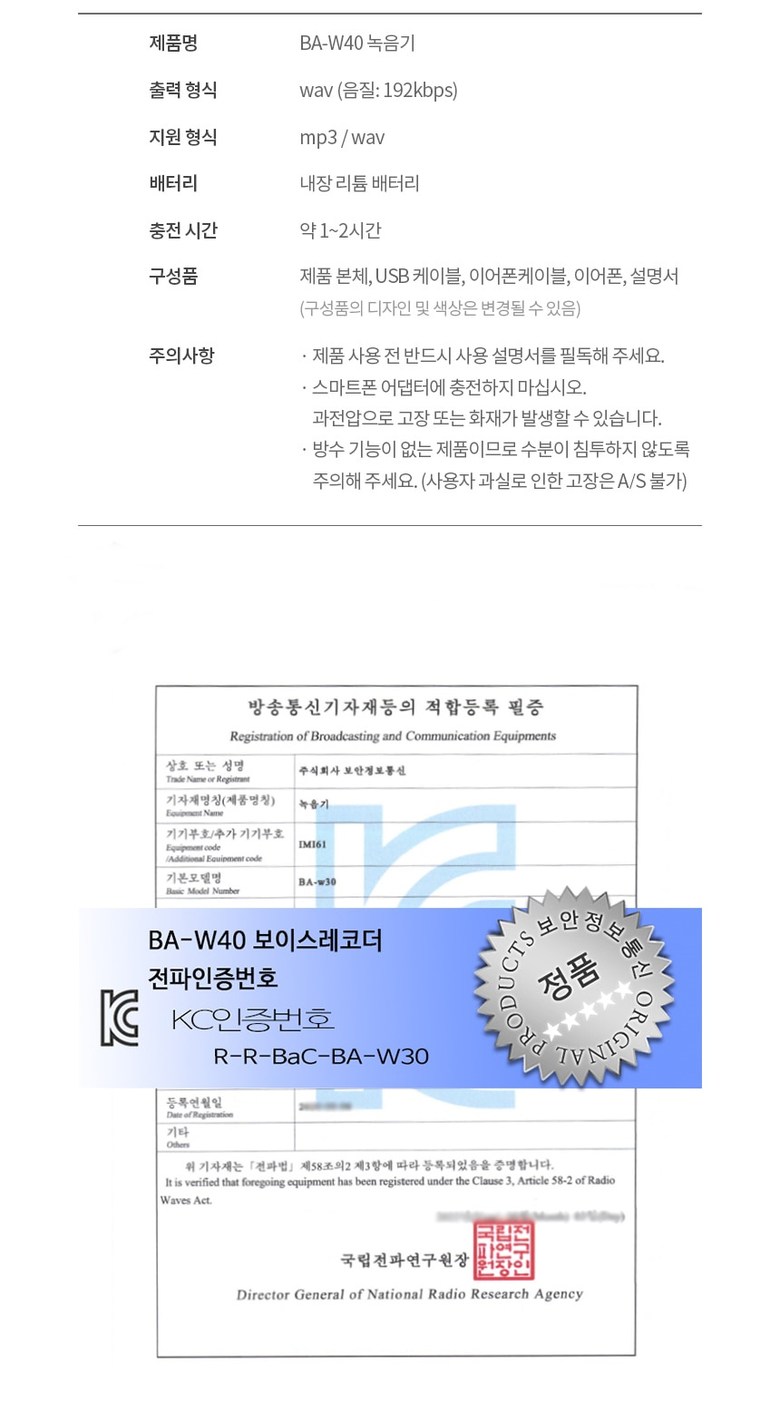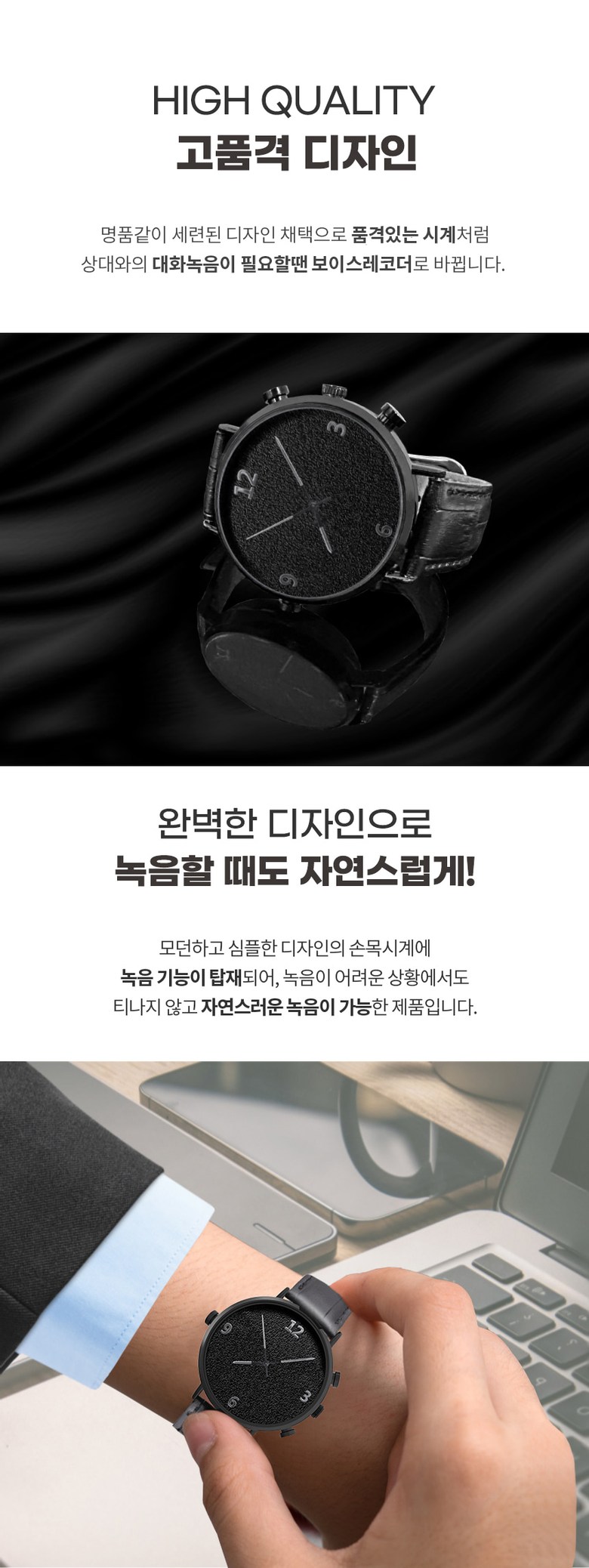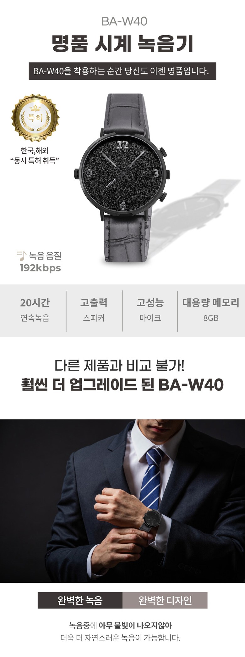 JB-W40 손목시계형녹음기 바늘타입 연속 20시간 녹음가능 정장 업무 매장 분쟁방지용