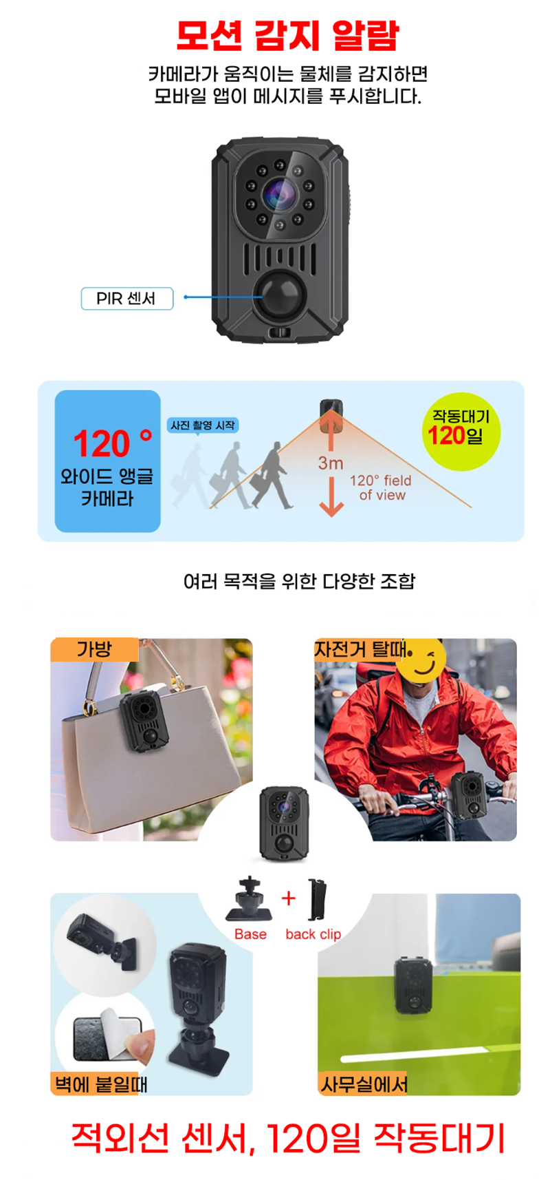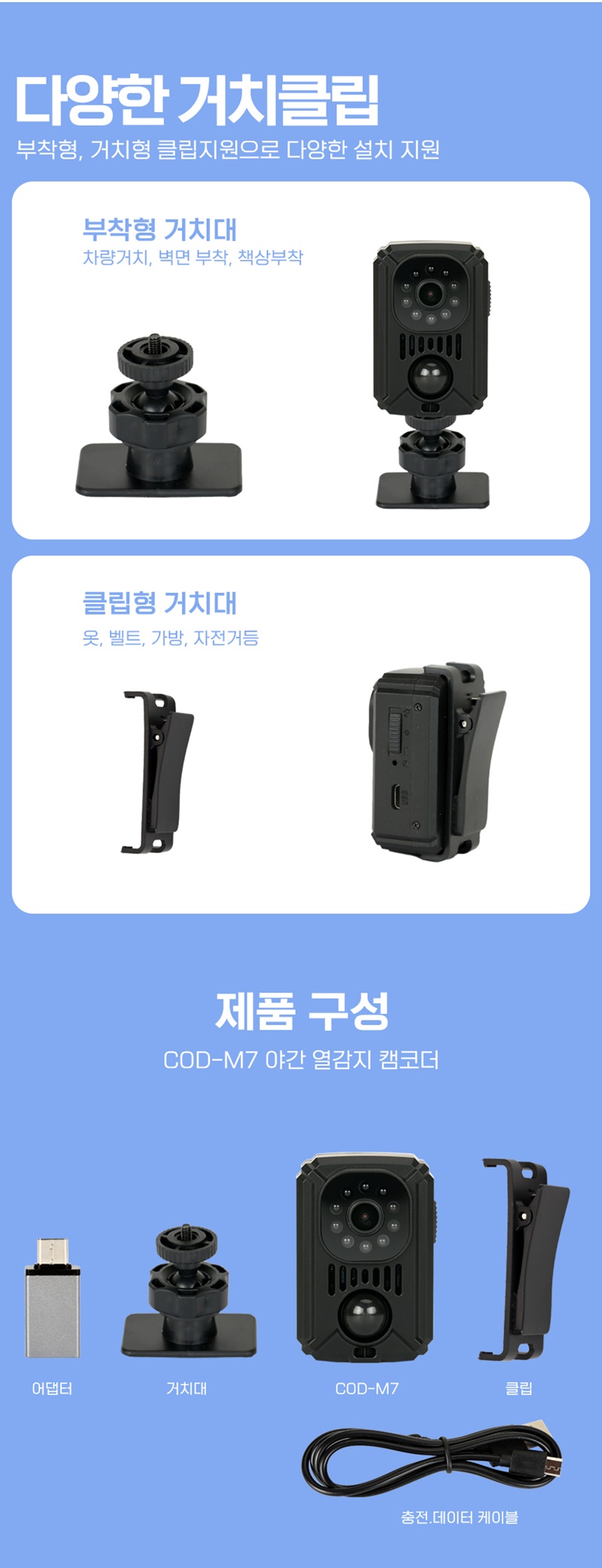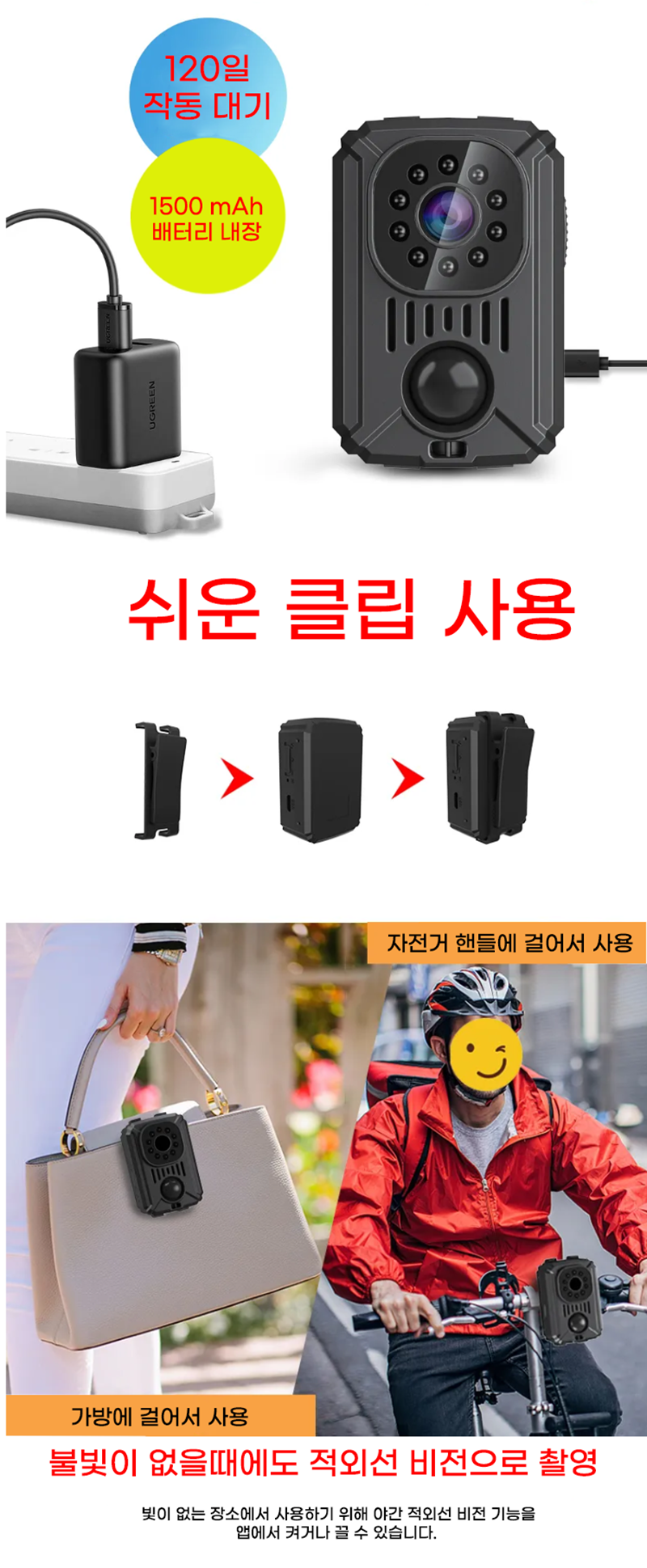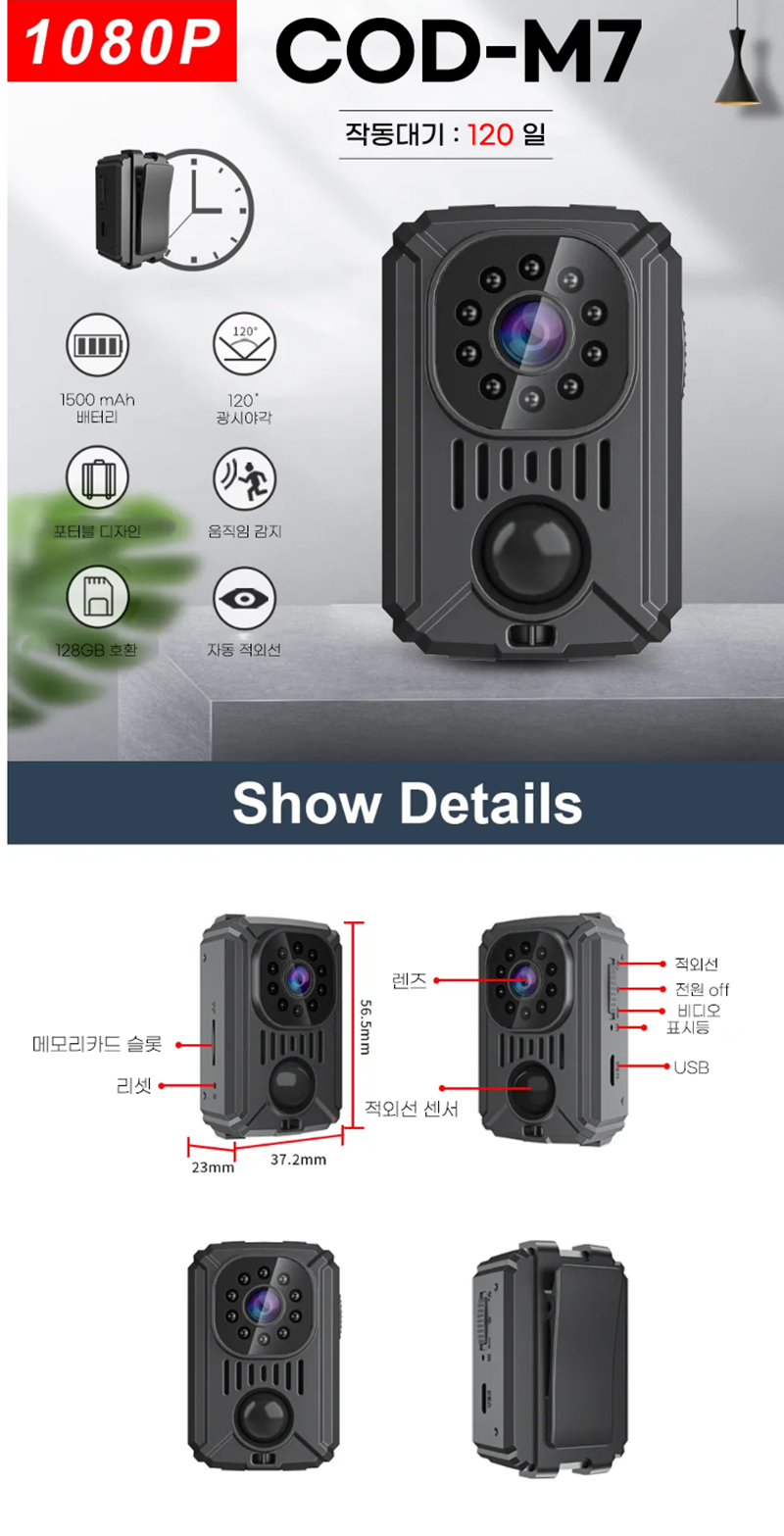 COD-M7 야간적외선 액션캠 스포츠카메라 자전거 바이크 블랙박스 연속촬영 11시간 120일 동작감지