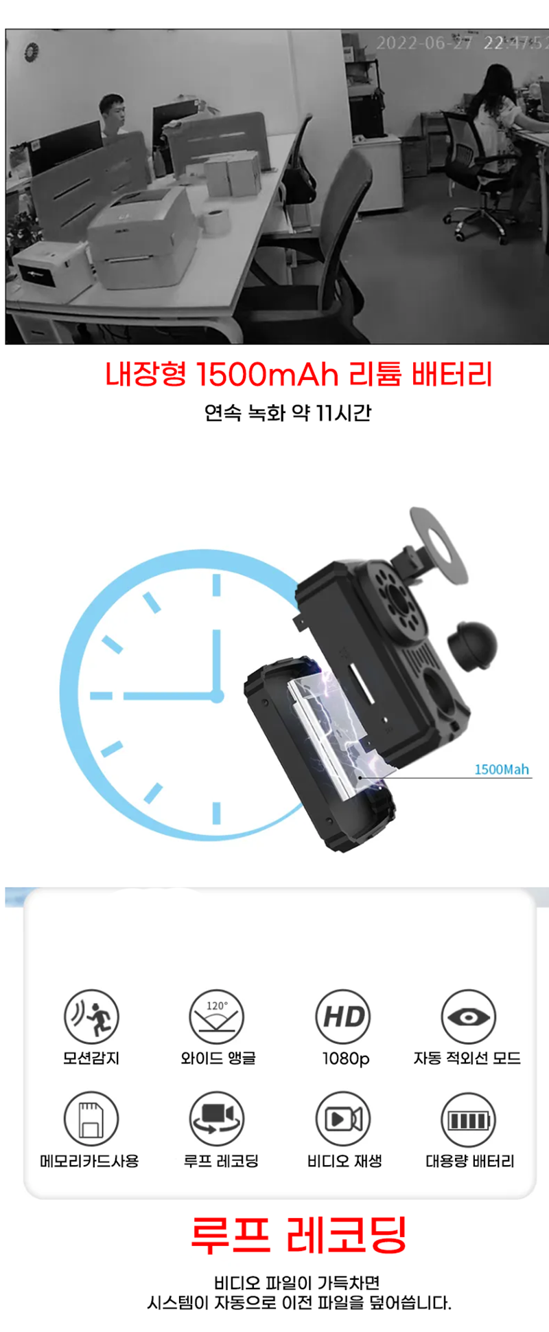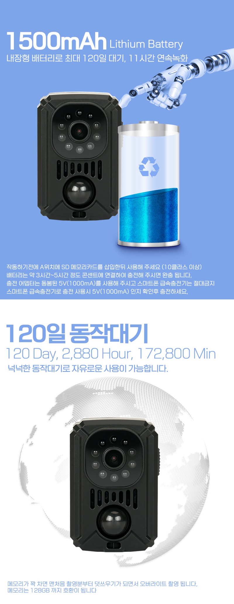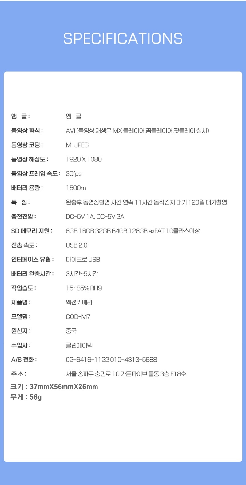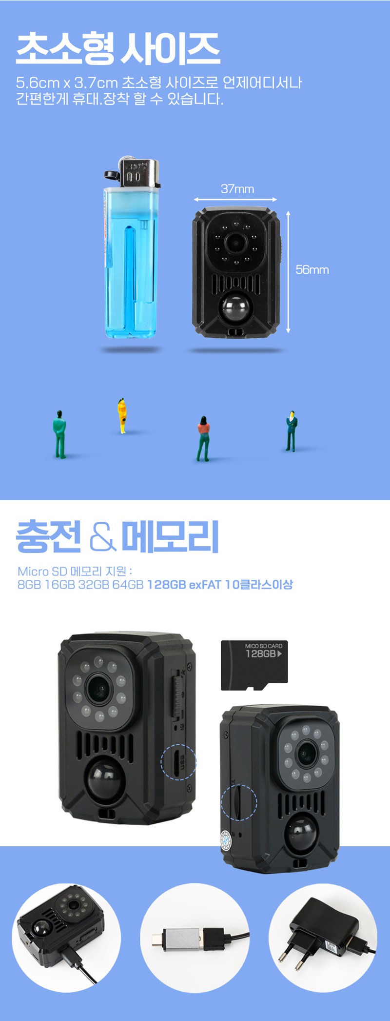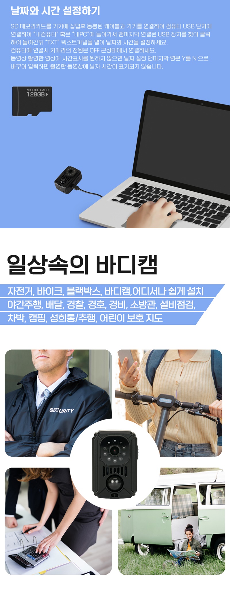 COD-M7 야간적외선 액션캠 스포츠카메라 자전거 바이크 블랙박스 연속촬영 11시간 120일 동작감지