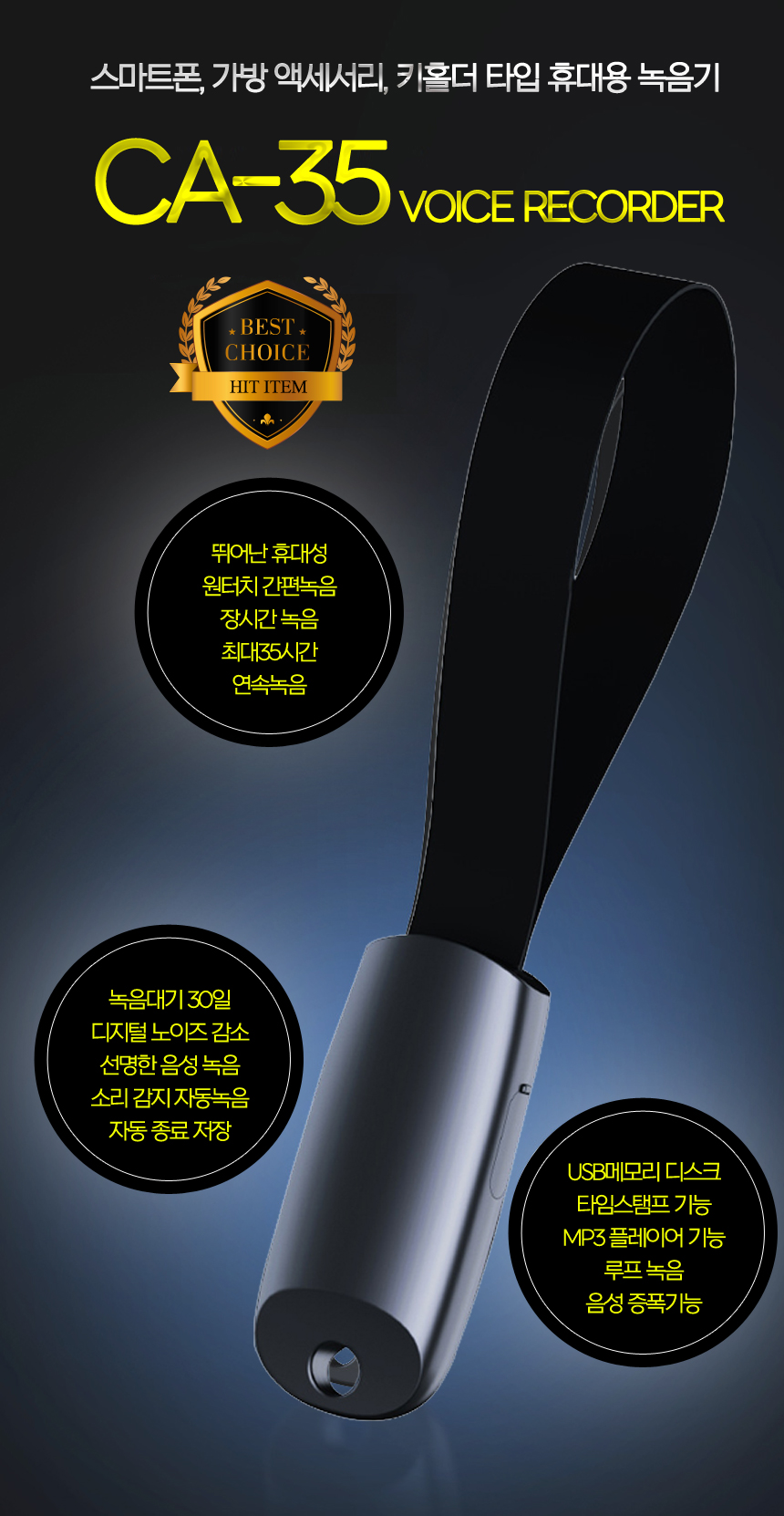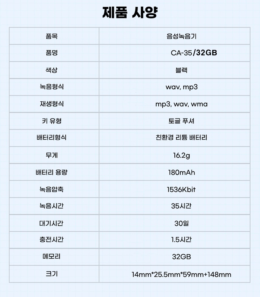 JB-35 녹음기 32GB 음성증폭 가방걸이녹취기 매장 민원업무 비즈니스 분쟁 방지 35시간 연속사용