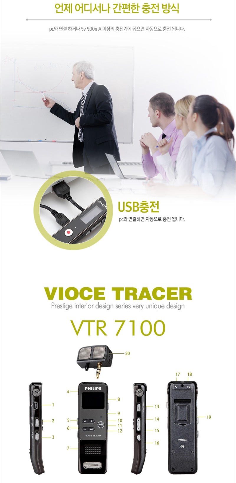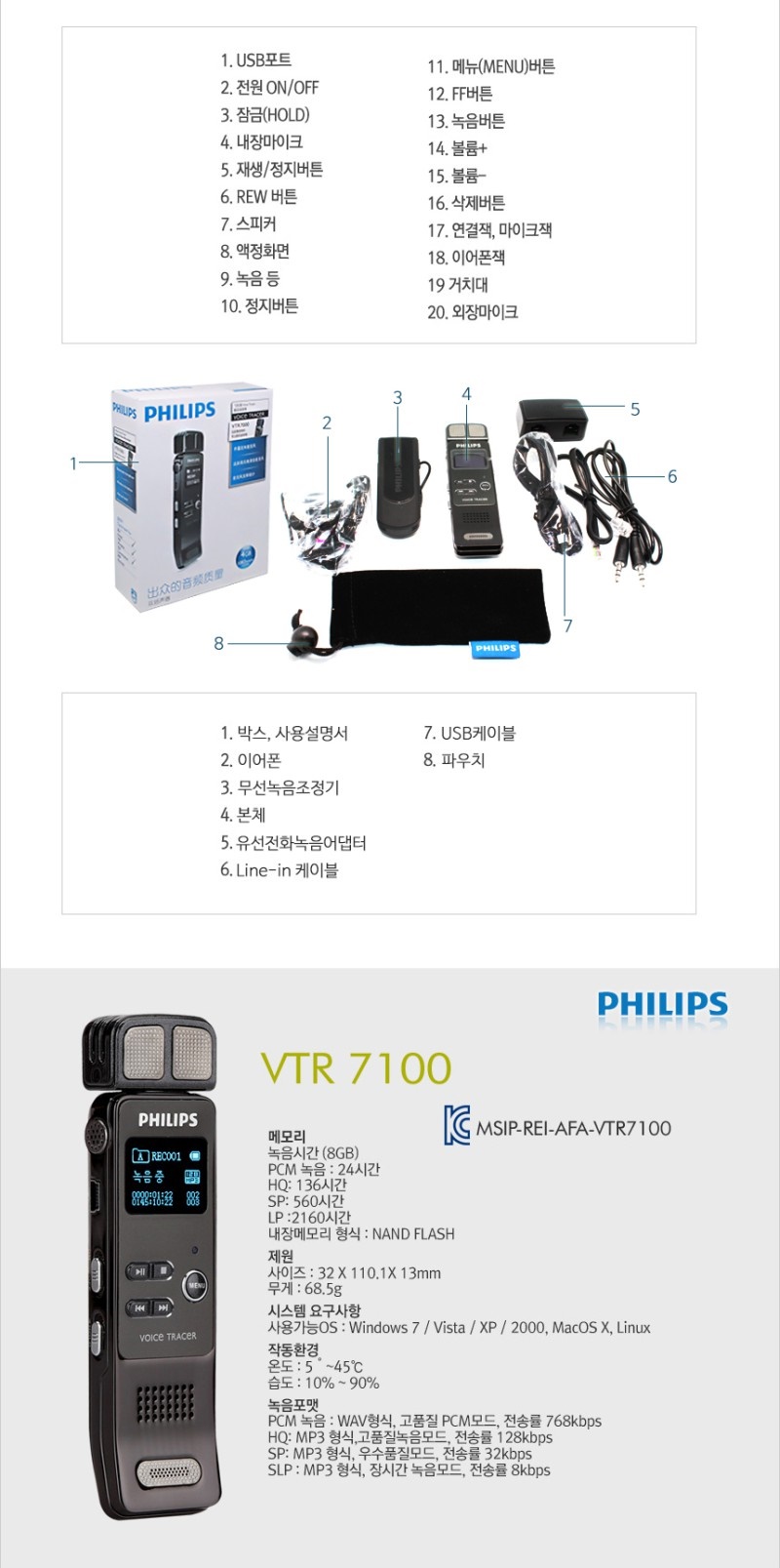 필립스 강의용 녹음기 필립스 무선 녹취기 실시간 원거리 청취 고음질 강의용