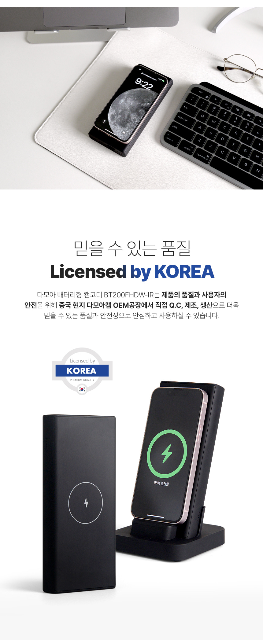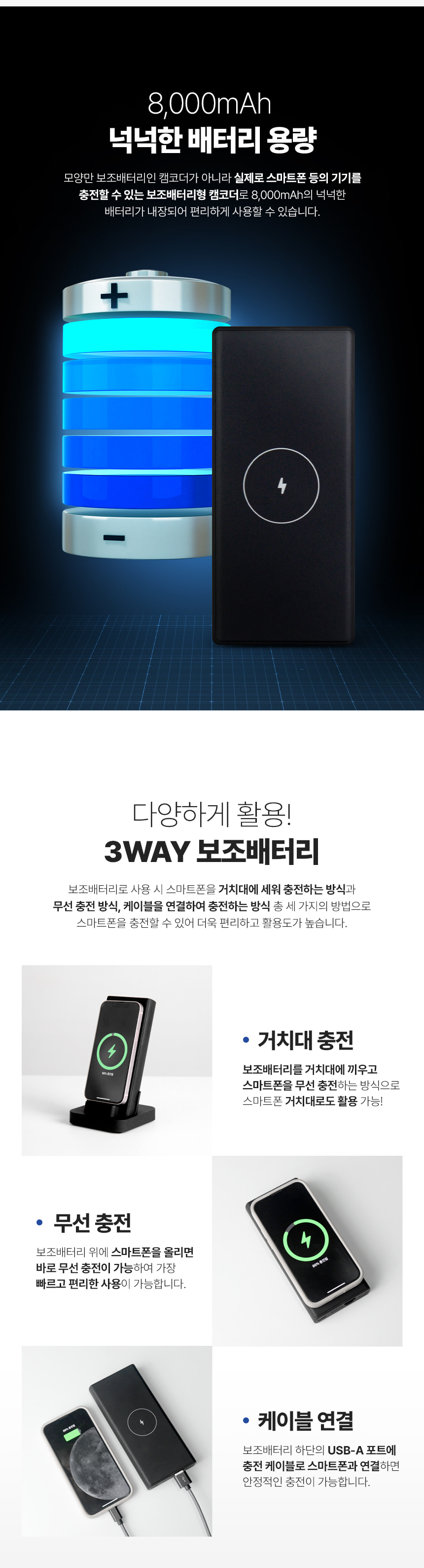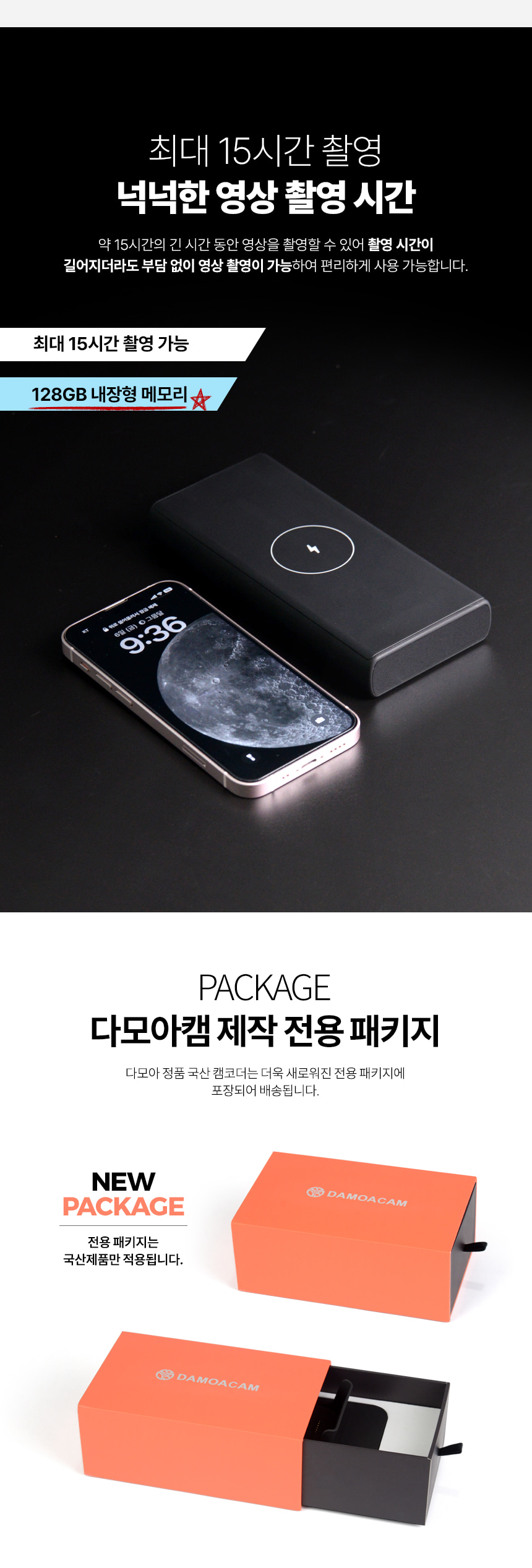 보조배터리캠코더 선명 동영상카메라 FHD 1080P 저조도촬영 유무선충전방식