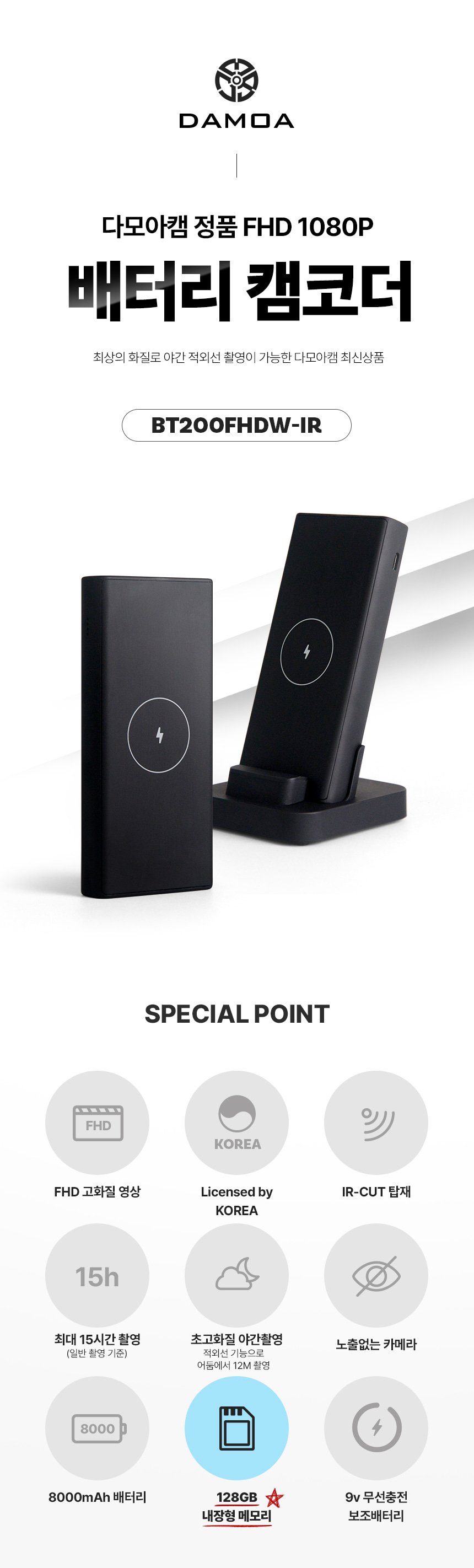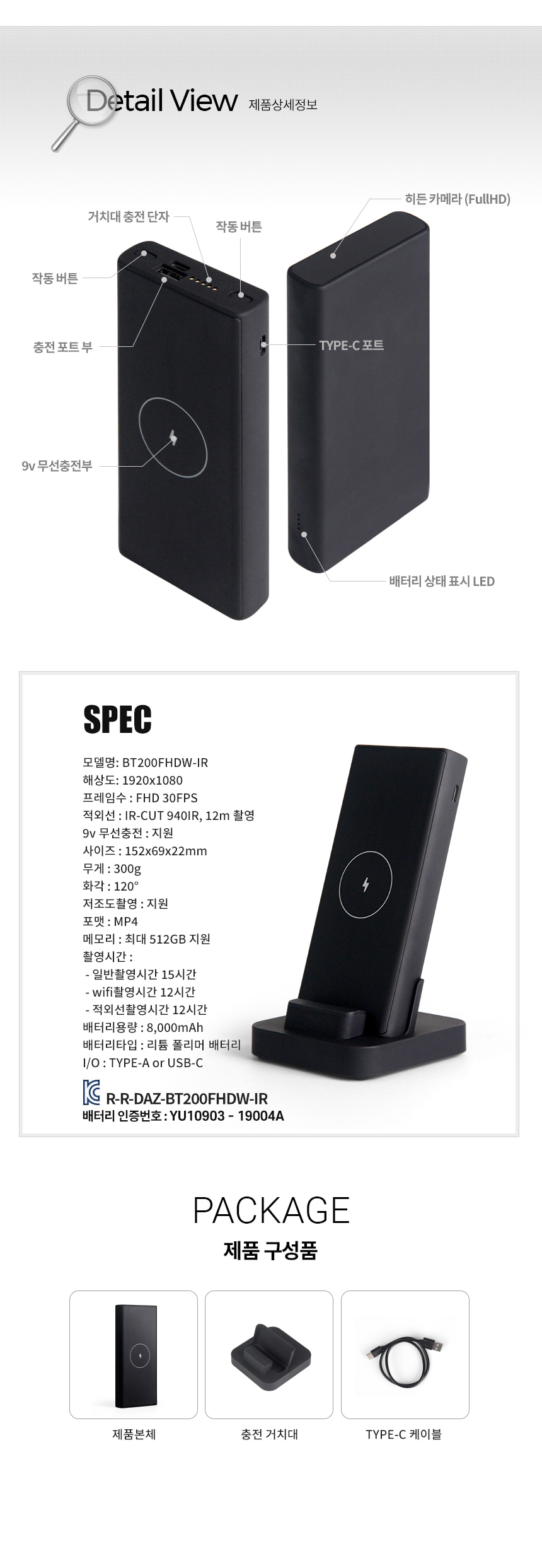 BT200FHDW-IR 보조배터리캠코더
