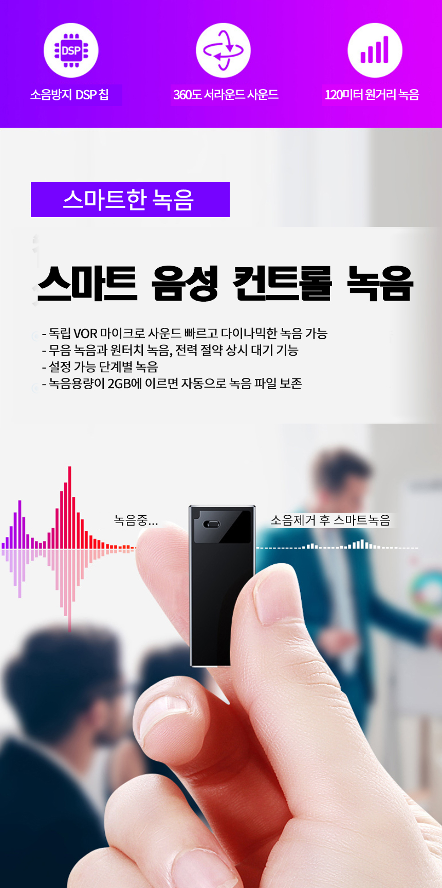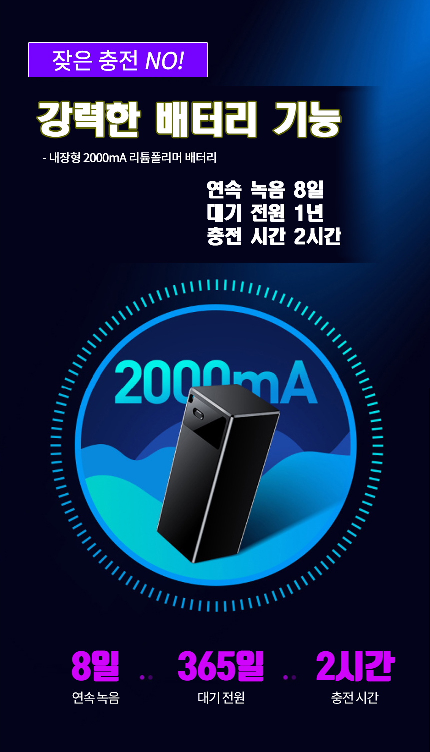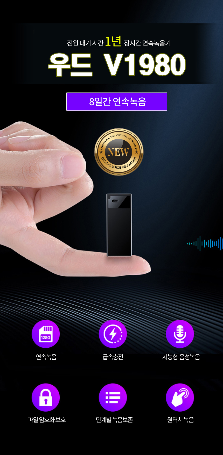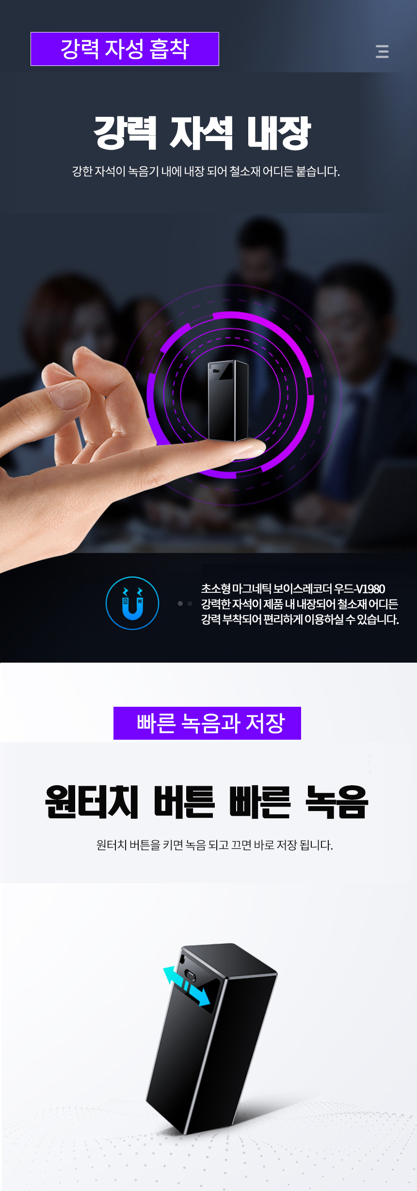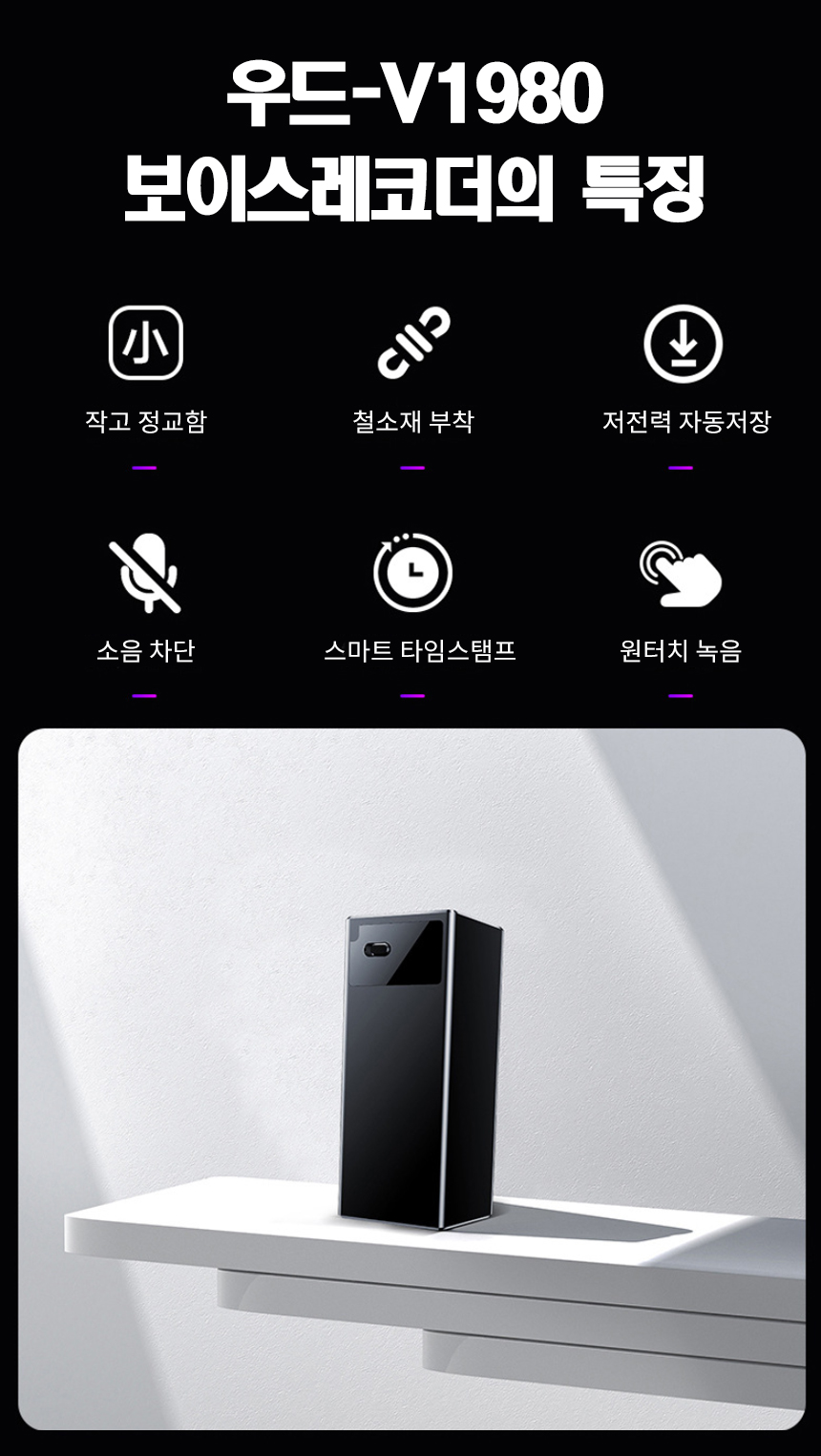 JB-V1980 장시간 녹음기 365일 전력대기 소리감지 VOS 짱짱녹음 차량용 대화 녹취 자석특수부착