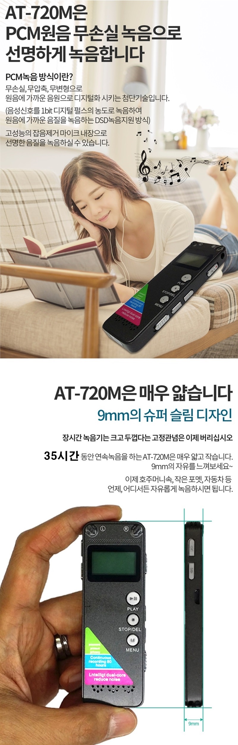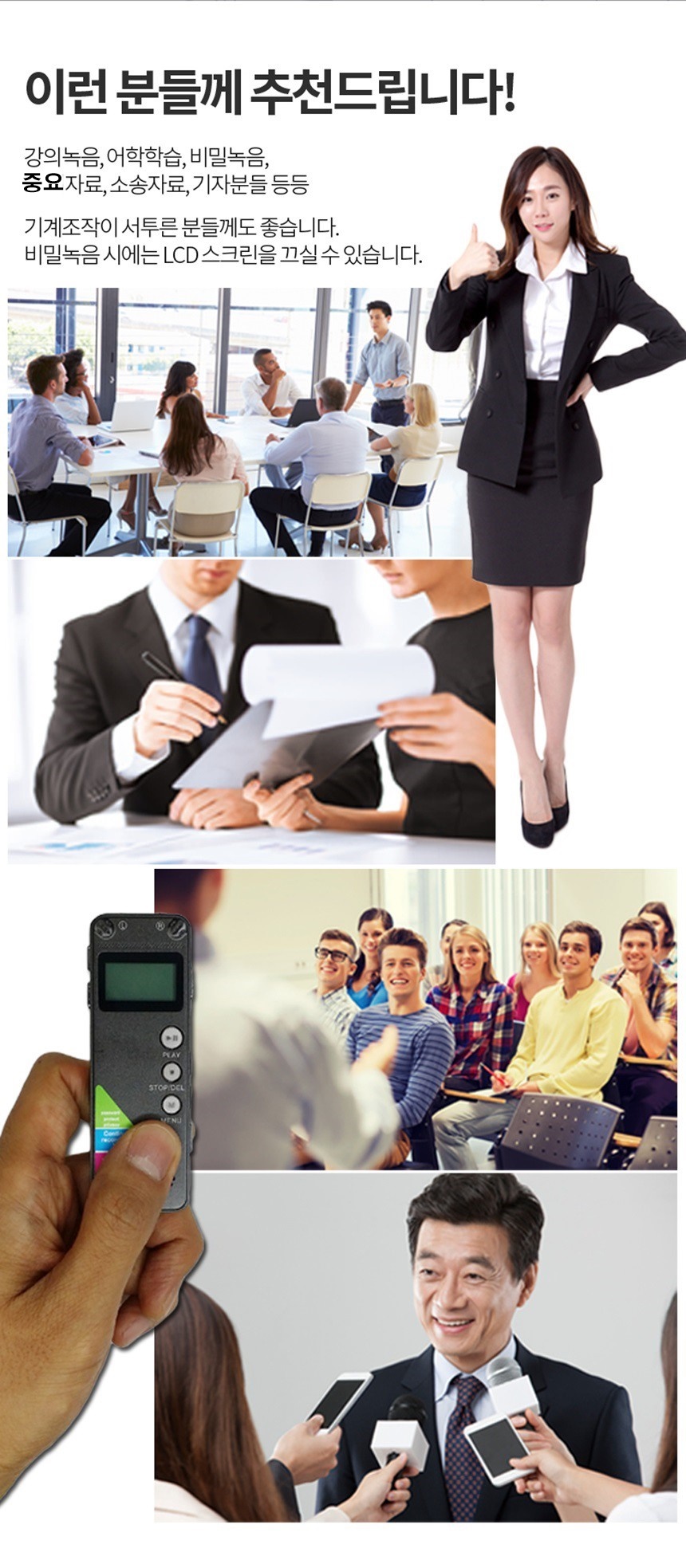 JB-720M 녹음기 VOS 소리감지 간편 조작 LED 고음질녹취