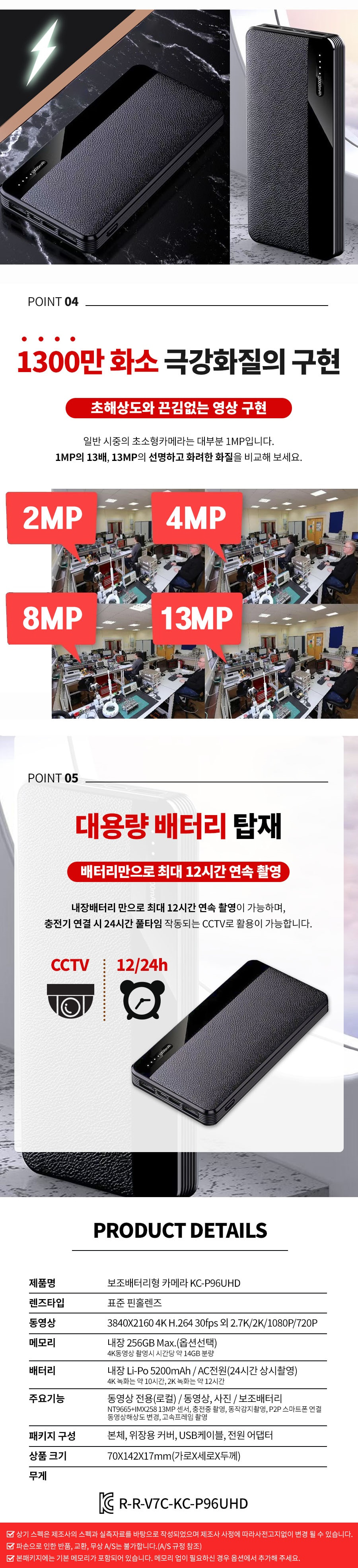 보조배터리캠 카메라 리얼캠코더 장시간촬영 1300만화소 초극강화질 12시간 연속촬영