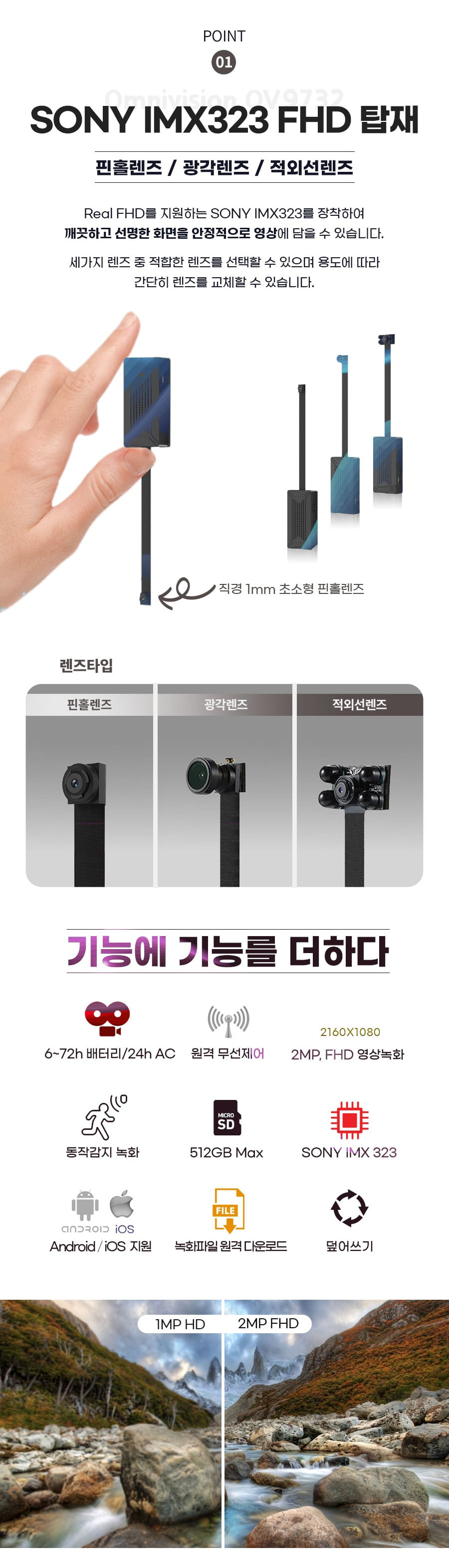모듈캠코더 200만 화소 2K 광각렌즈 감시카메라 와이파이 실시간 전국어디서든 스마트폰 확인 야간적외선