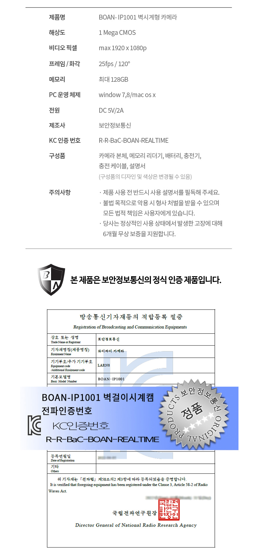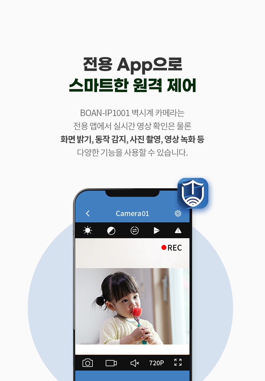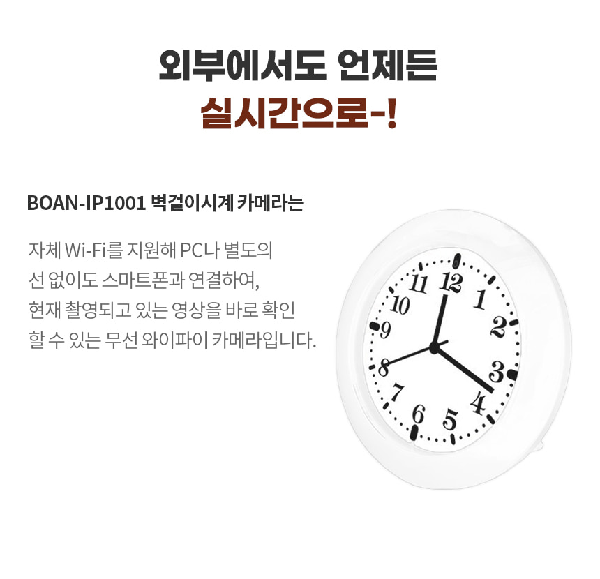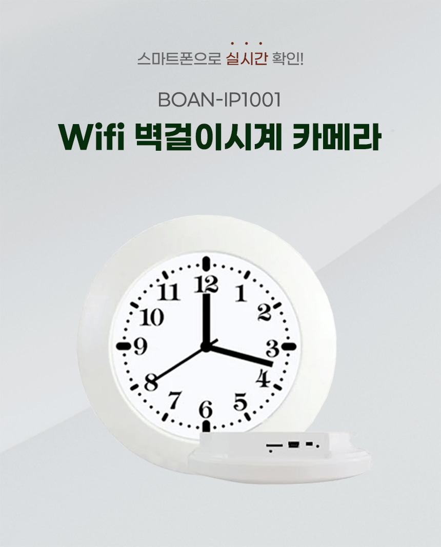 BOAN-IP1001 벽시계캠코더 감시카메라 와이파이 실시간 전국어디서든 스마트폰 영상 확인