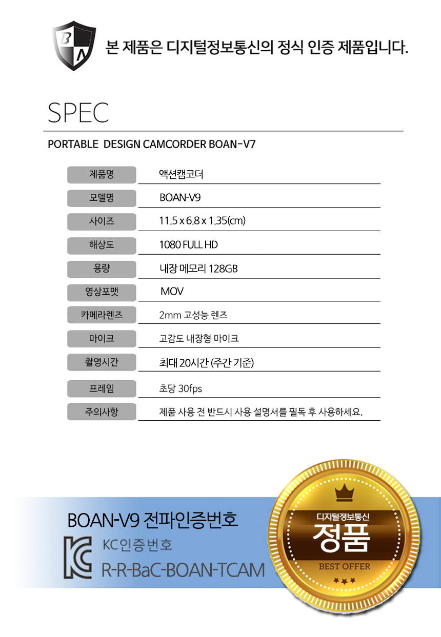 BOAN-V9 배터리카메라 캠코더 액션카메라 보조배터리 액션캠 128GB 시간 연속촬영
