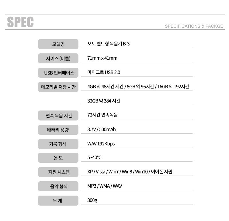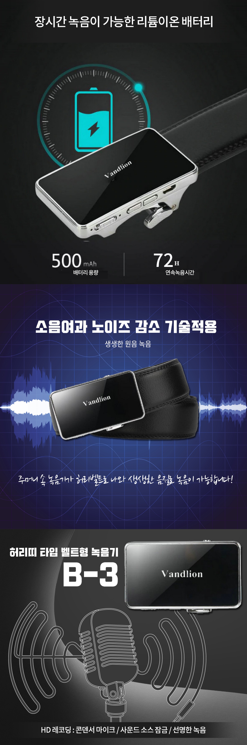 아이언-B3 벨트녹음기 허리착용 3일 연속 70시간 녹음가능 고음질 8GB