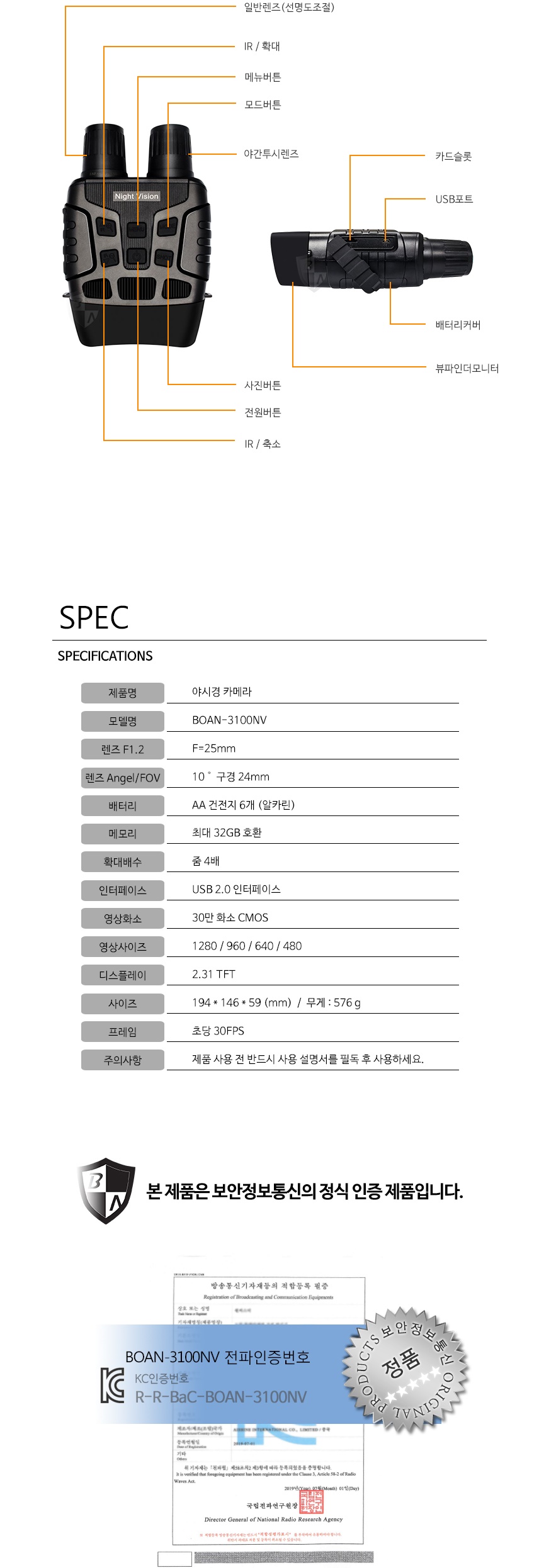 3100NV 야시경캠코더