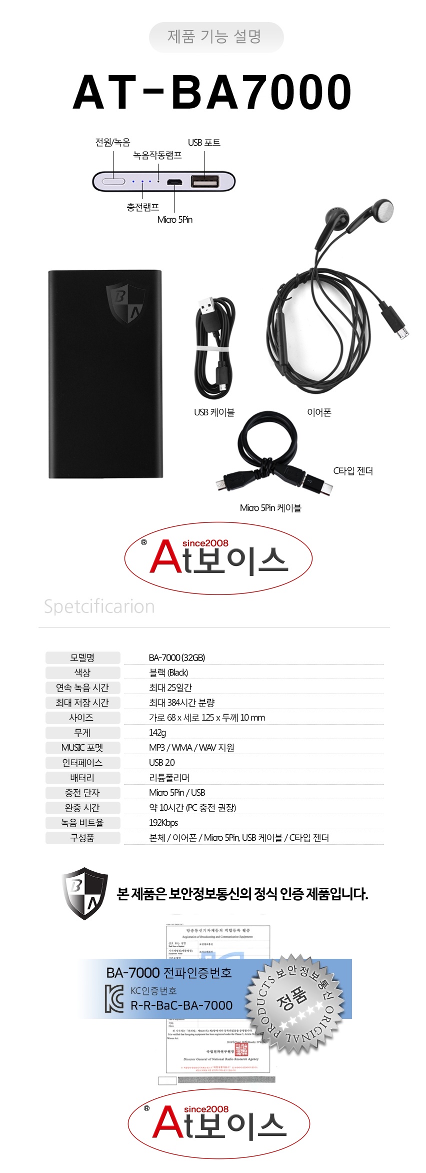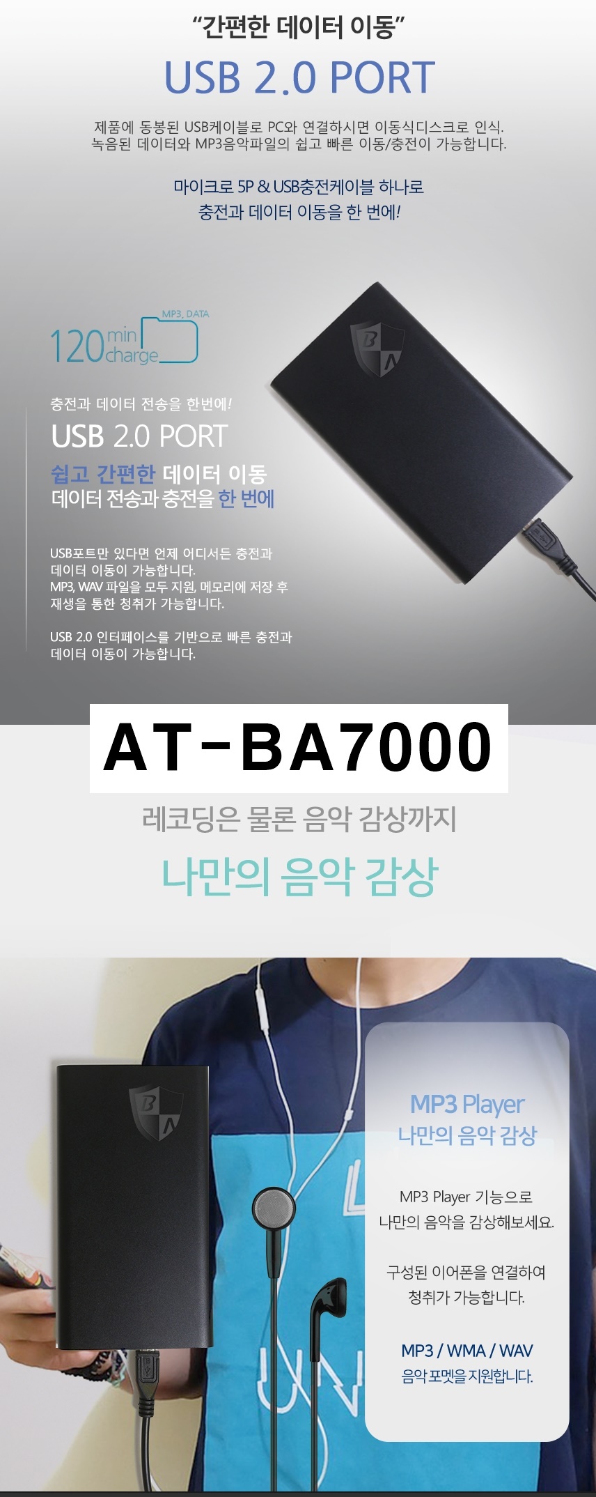 BA-7000 보조배터리녹음기