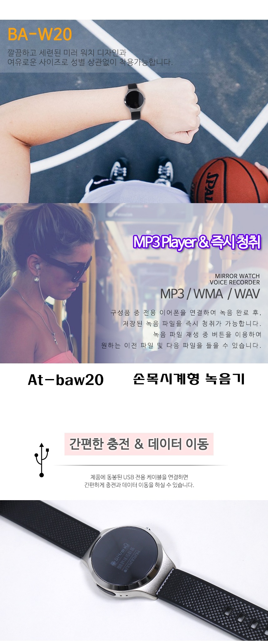BA-W20 장시간 55시간 연속녹음기 USB타입 스마트폰 바로 재생가능 녹음기