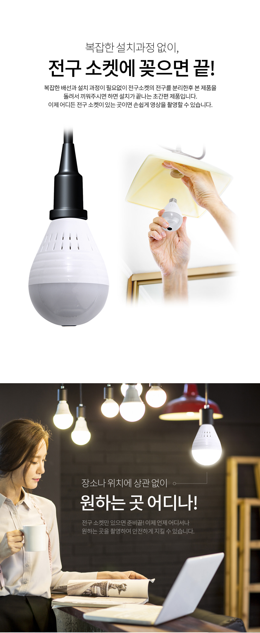 B-CAM LED램프형 WIFI 원격감시 전세계 어디서든 실시간영상 확인가능 256GB 지원