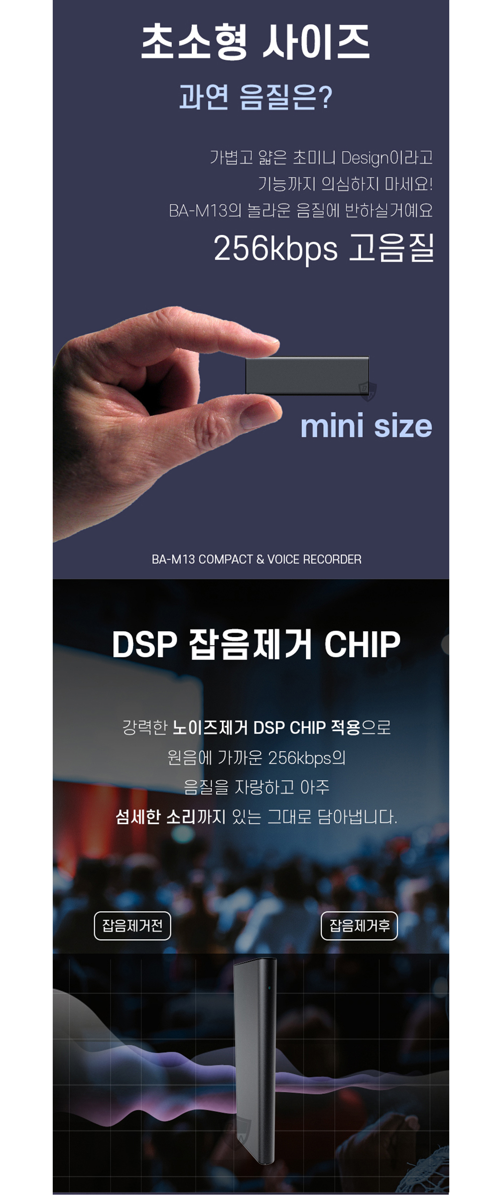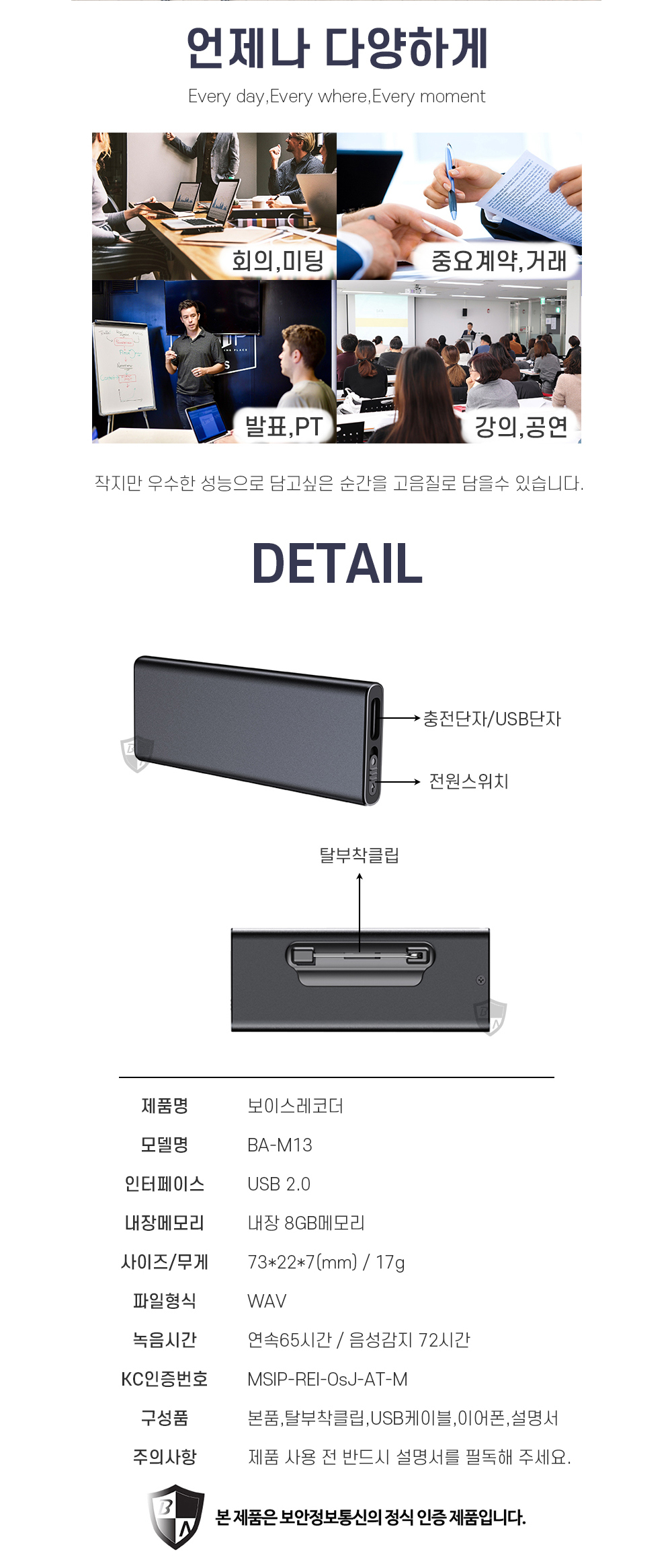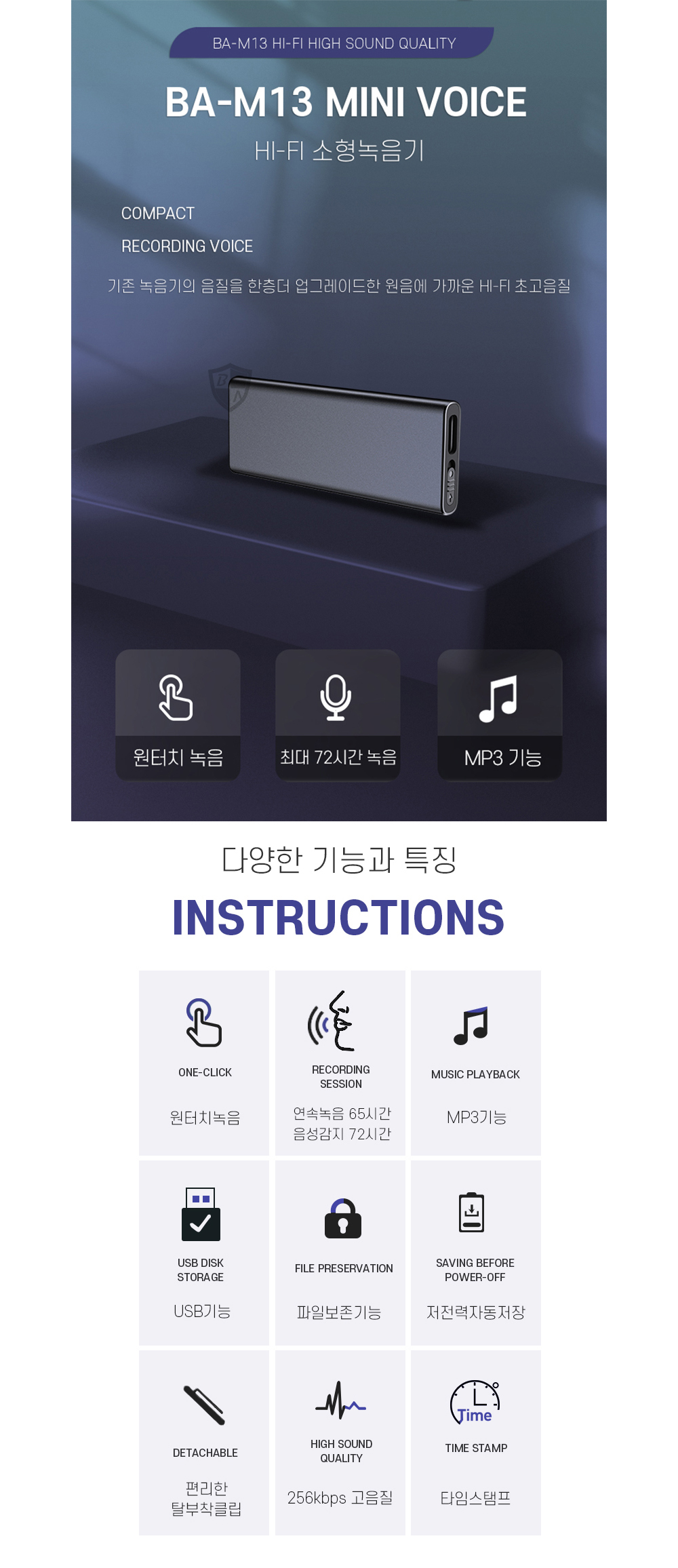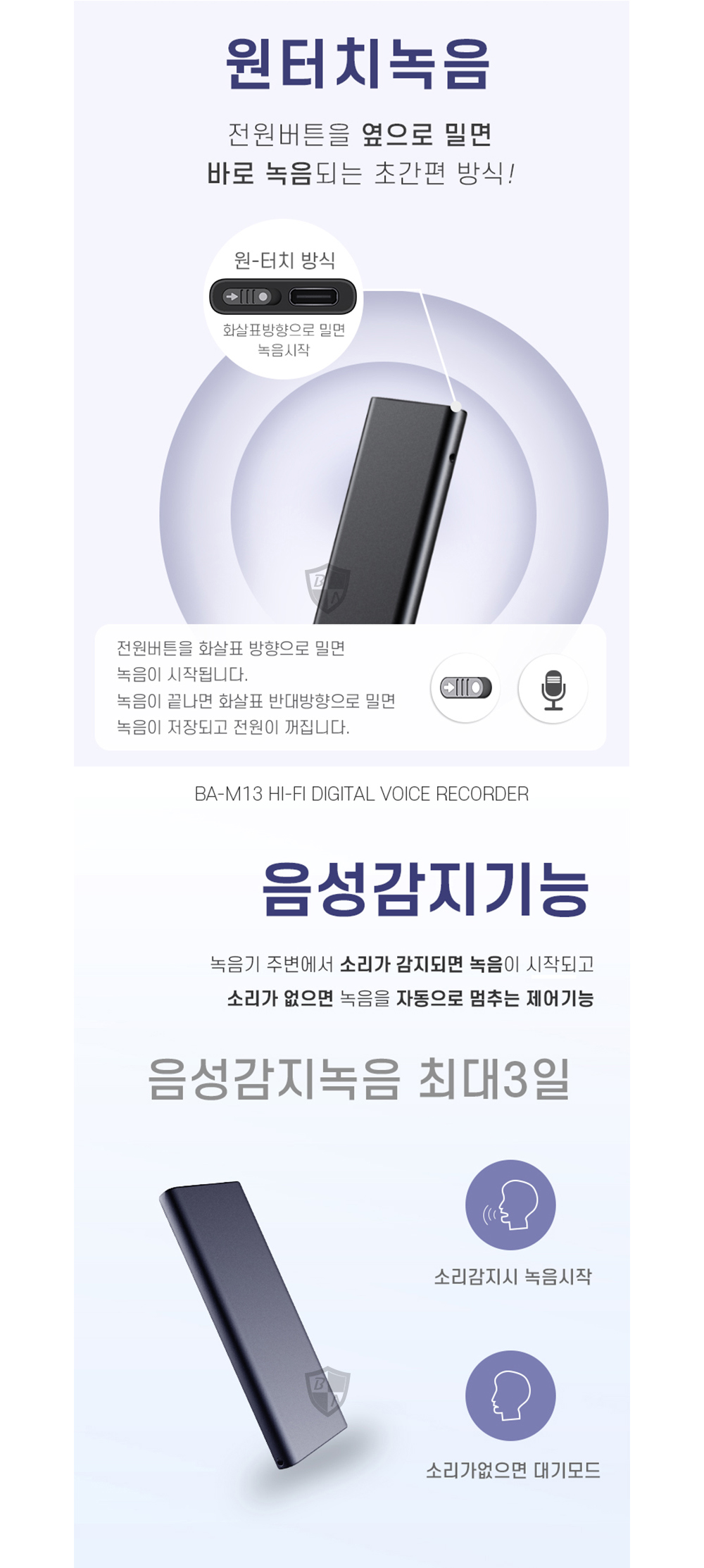 BA-M13 USB녹음기 72시간 3일간 소리감지 녹음가능