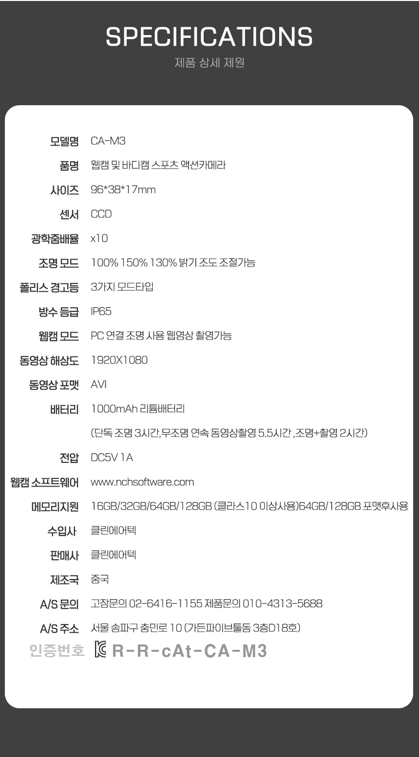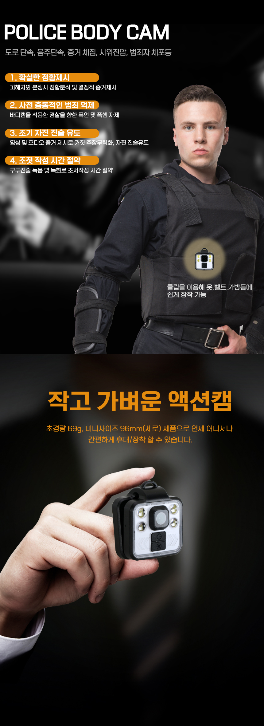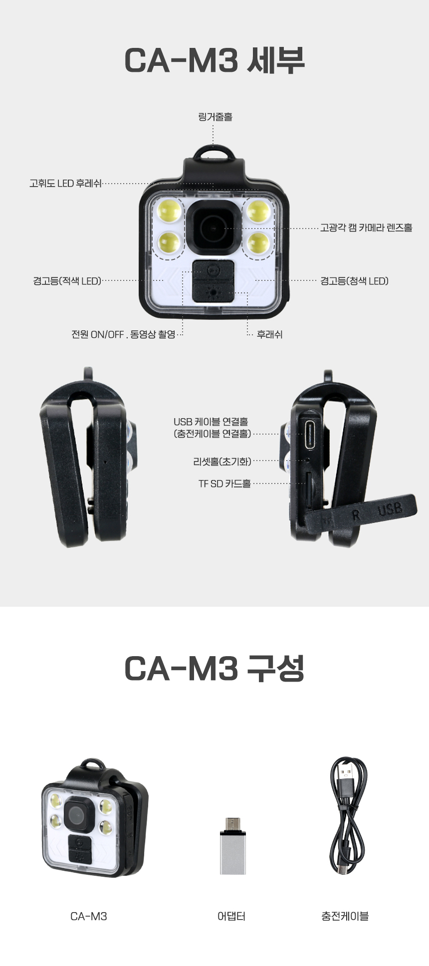 JB-M3 액션캠 바디캠 스포츠카메라 자전거 바이크 블랙박스 폴리스경고등